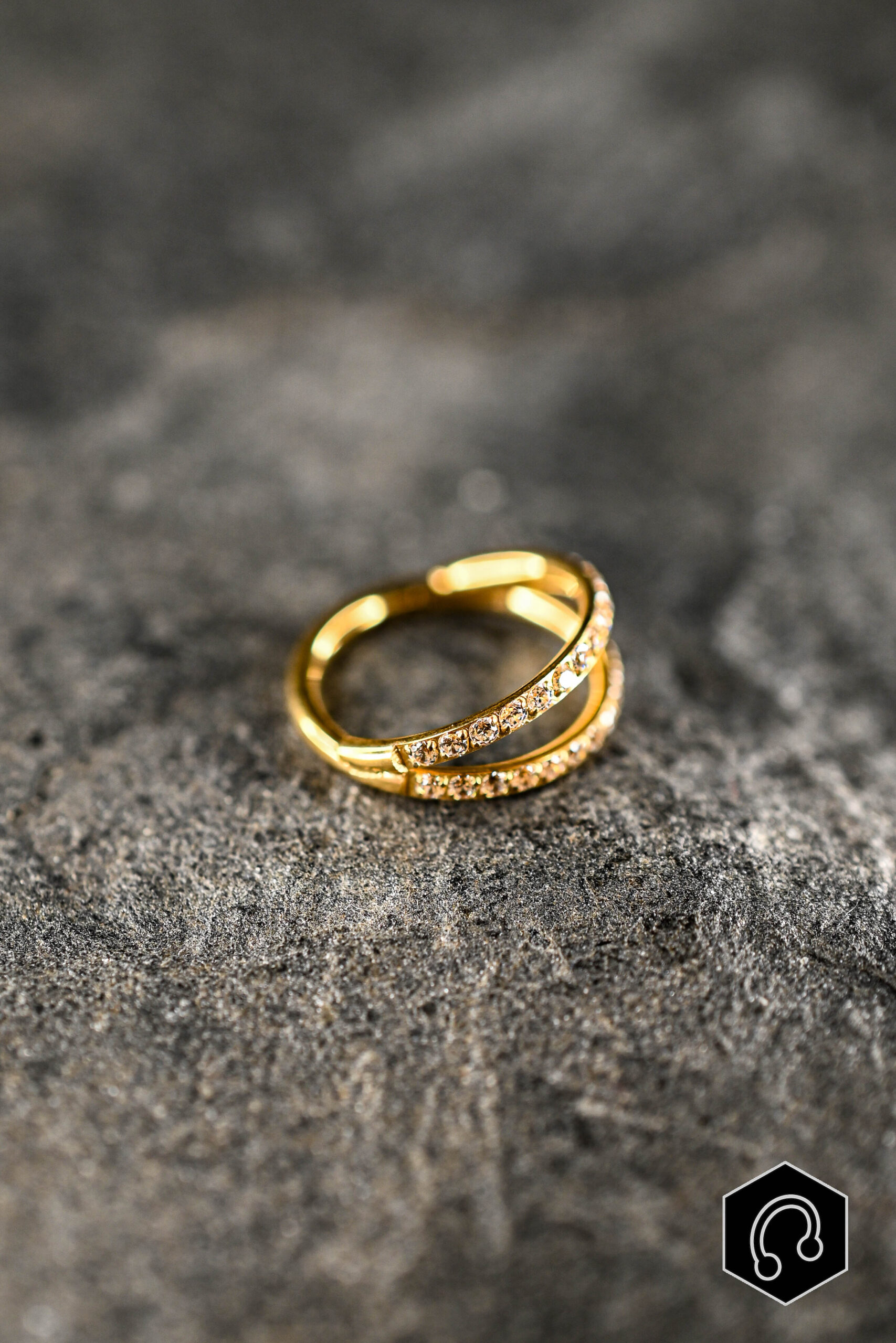 Anneau clicker doré Double Shimmer, le prix varie selon la taille, la couleur et l’option stérile (+5 €).