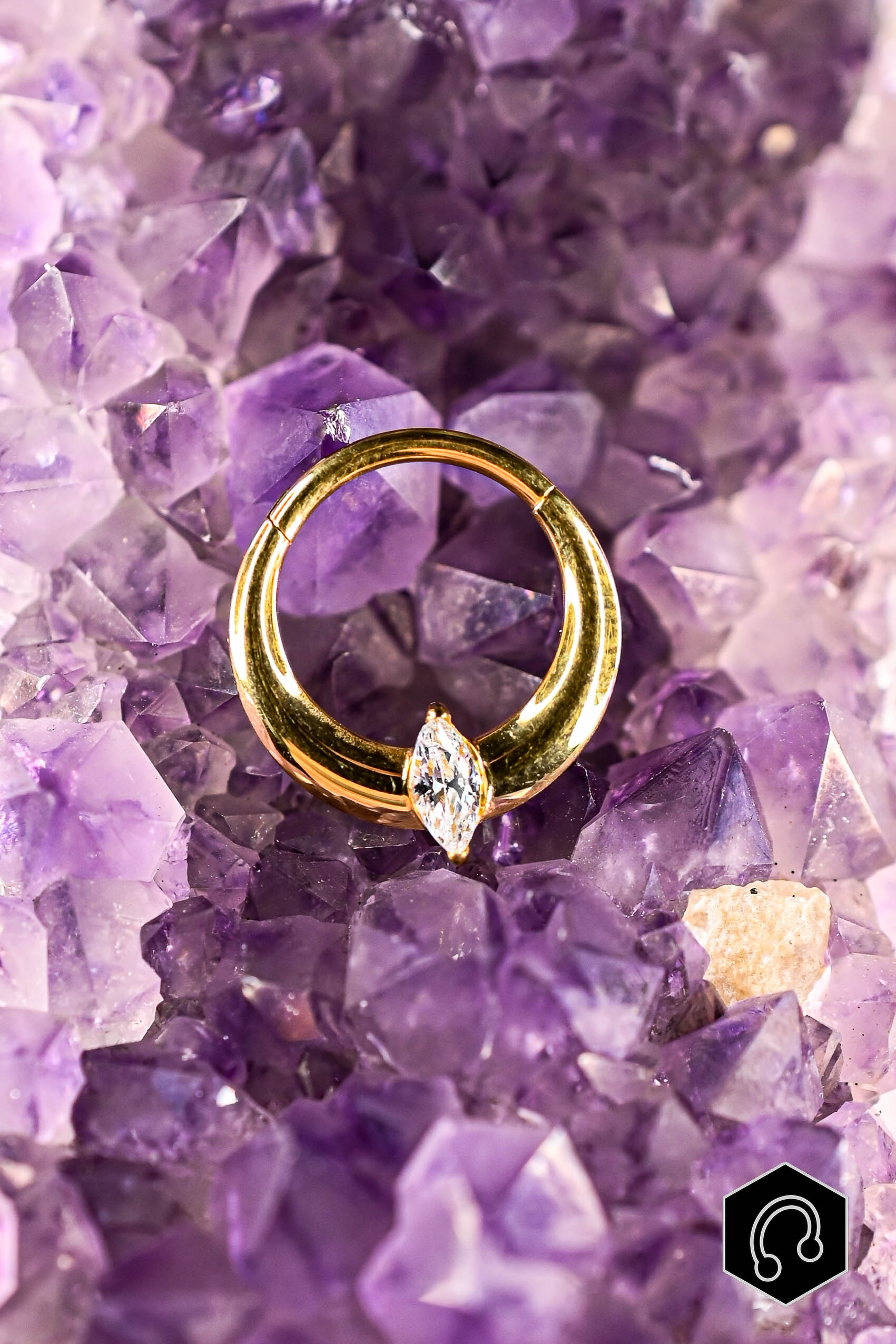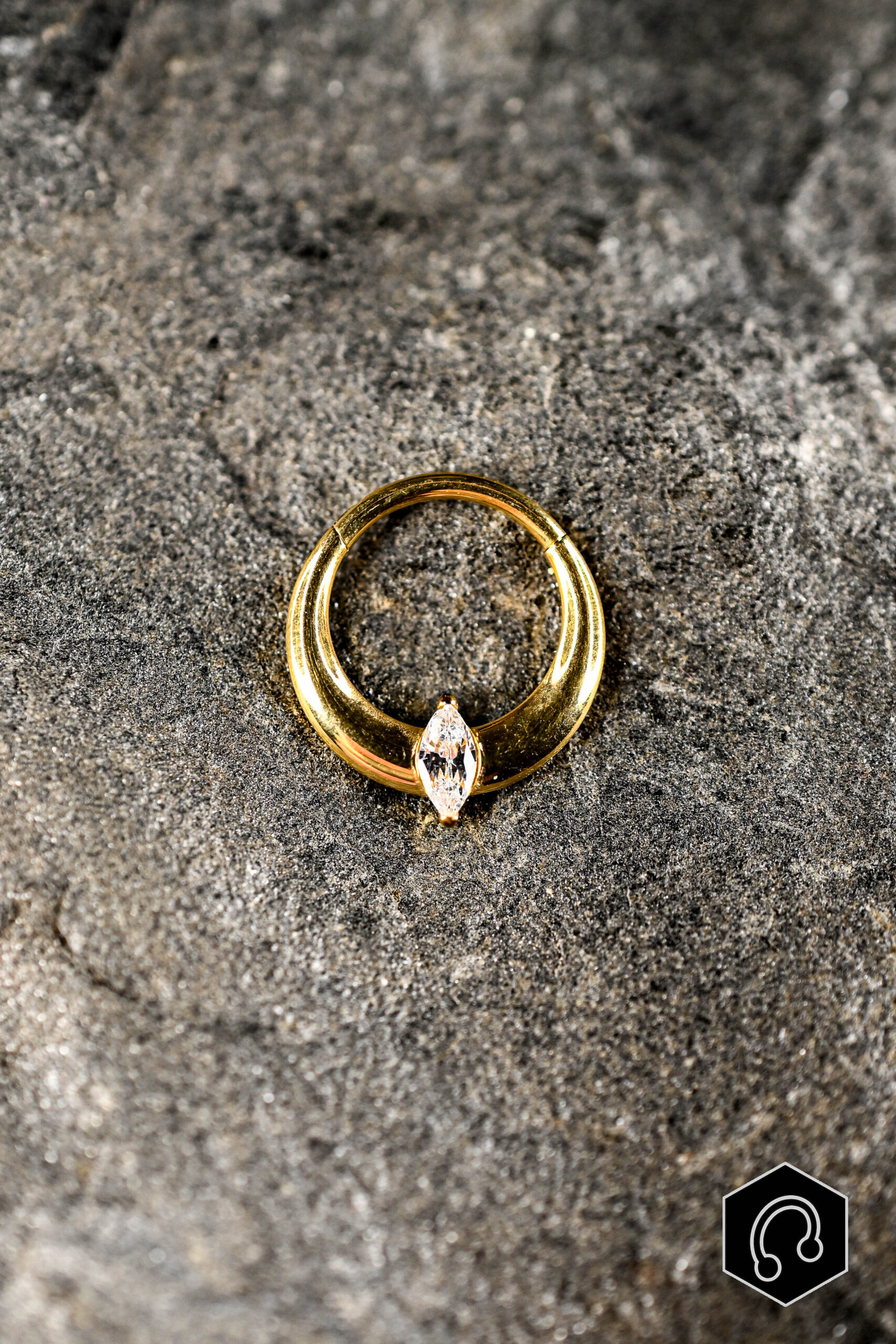 L’anneau clicker doré Marquise Beam met en valeur le septum, le daith, l’hélix ou le lobe, il apporte une touche de sophistication et d’élégance tout en restant facile à porter.