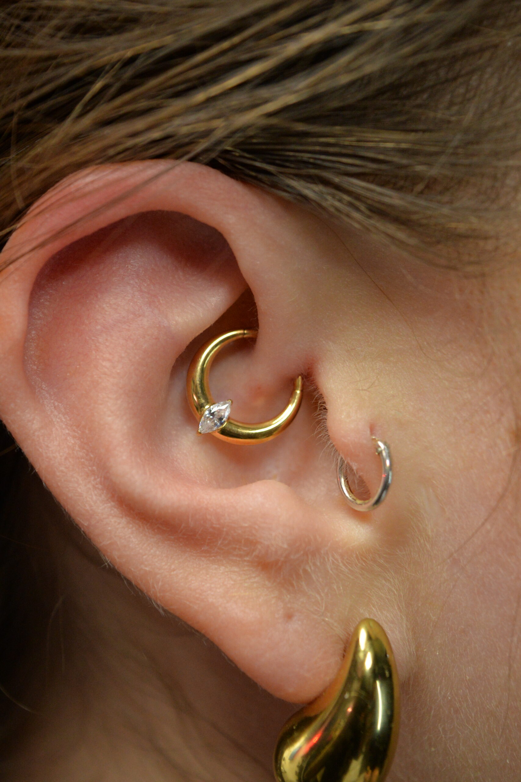 – Convient à plusieurs placements : daith, hélix, lobe, septum.