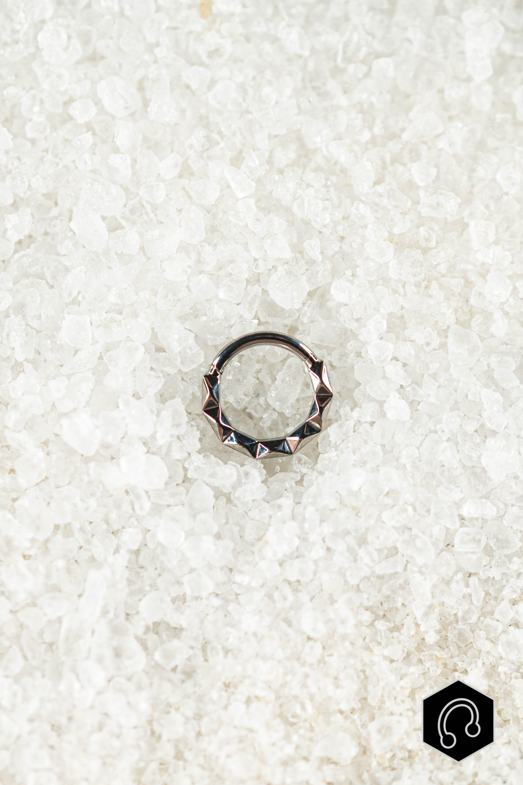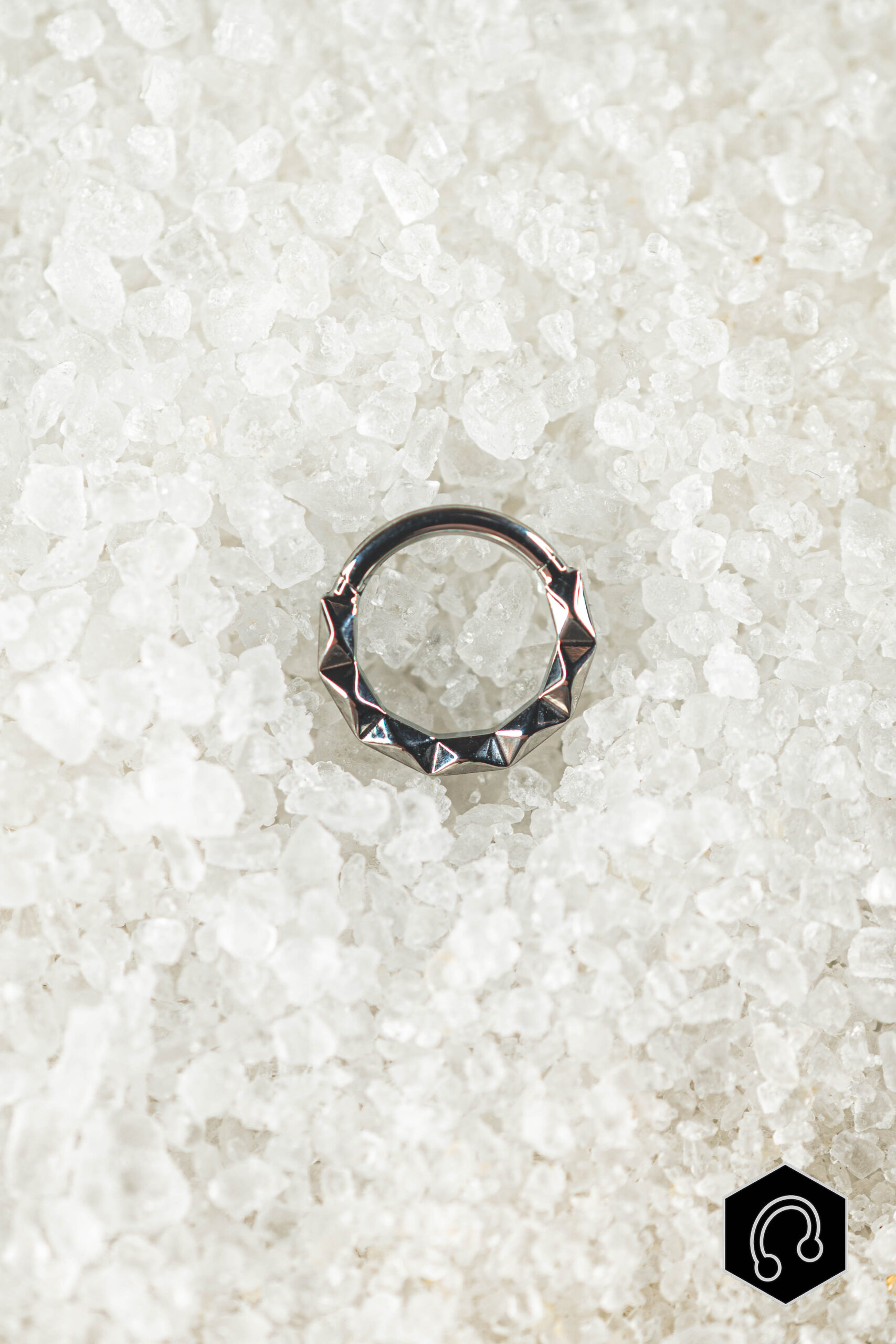 L’anneau clicker titane argenté Kalyx Edge se distingue par son design facetté au caractère affirmé. Ses reliefs géométriques accrochent la lumière et donnent au bijou une vraie présence, tout en conservant une ligne élégante et équilibrée.