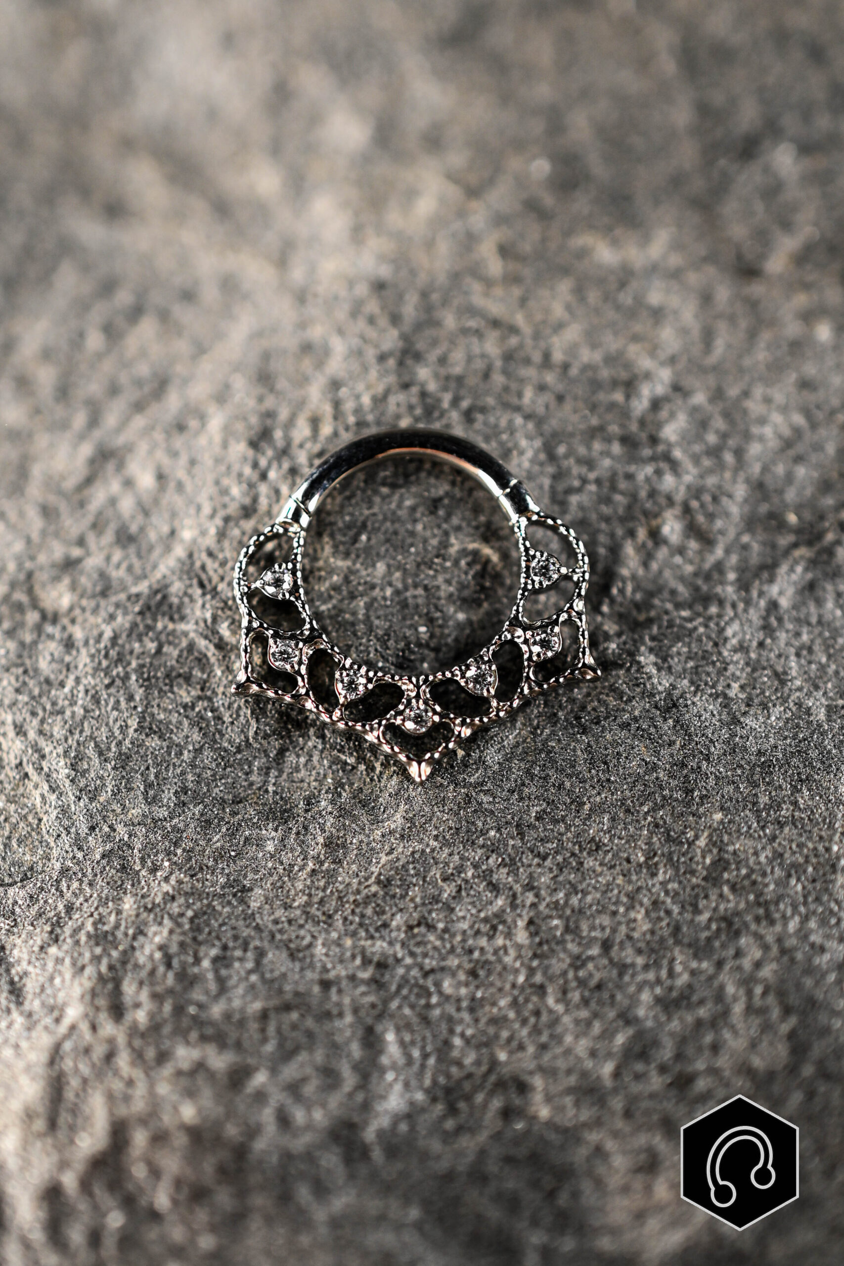 Mirage s’adapte à de nombreux piercings : septum, daith, hélix ou lobe, ajoutant à chacun une touche sophistiquée et lumineuse.