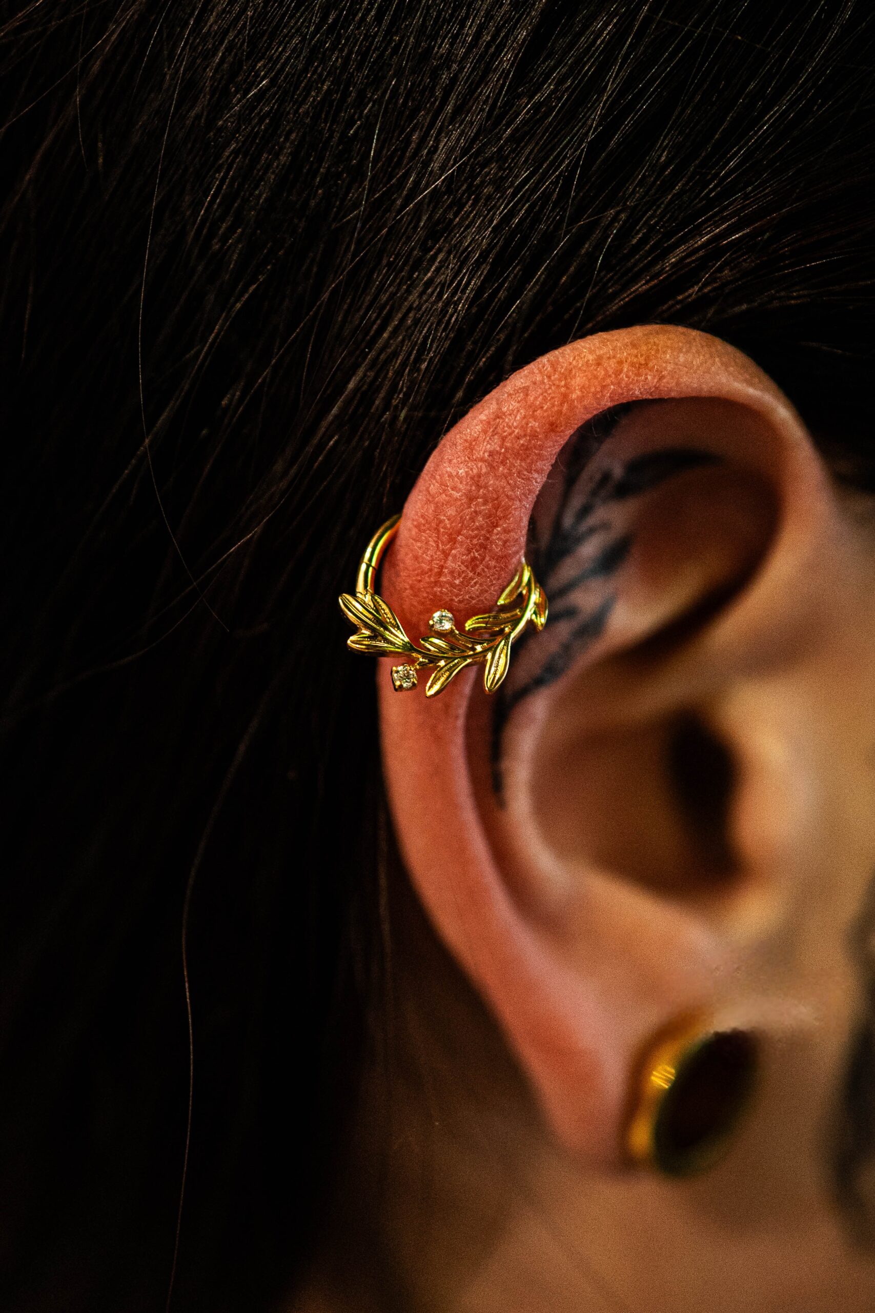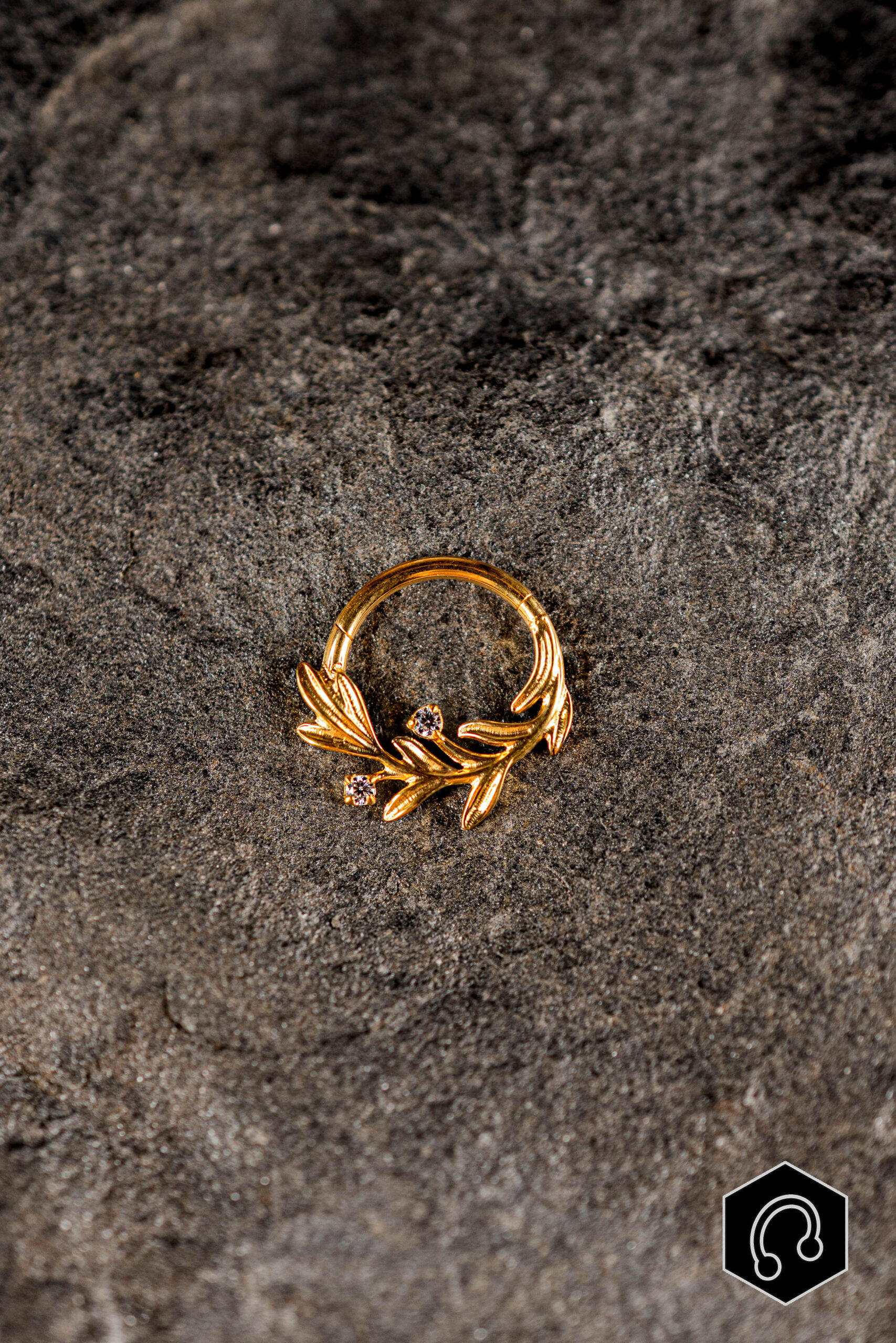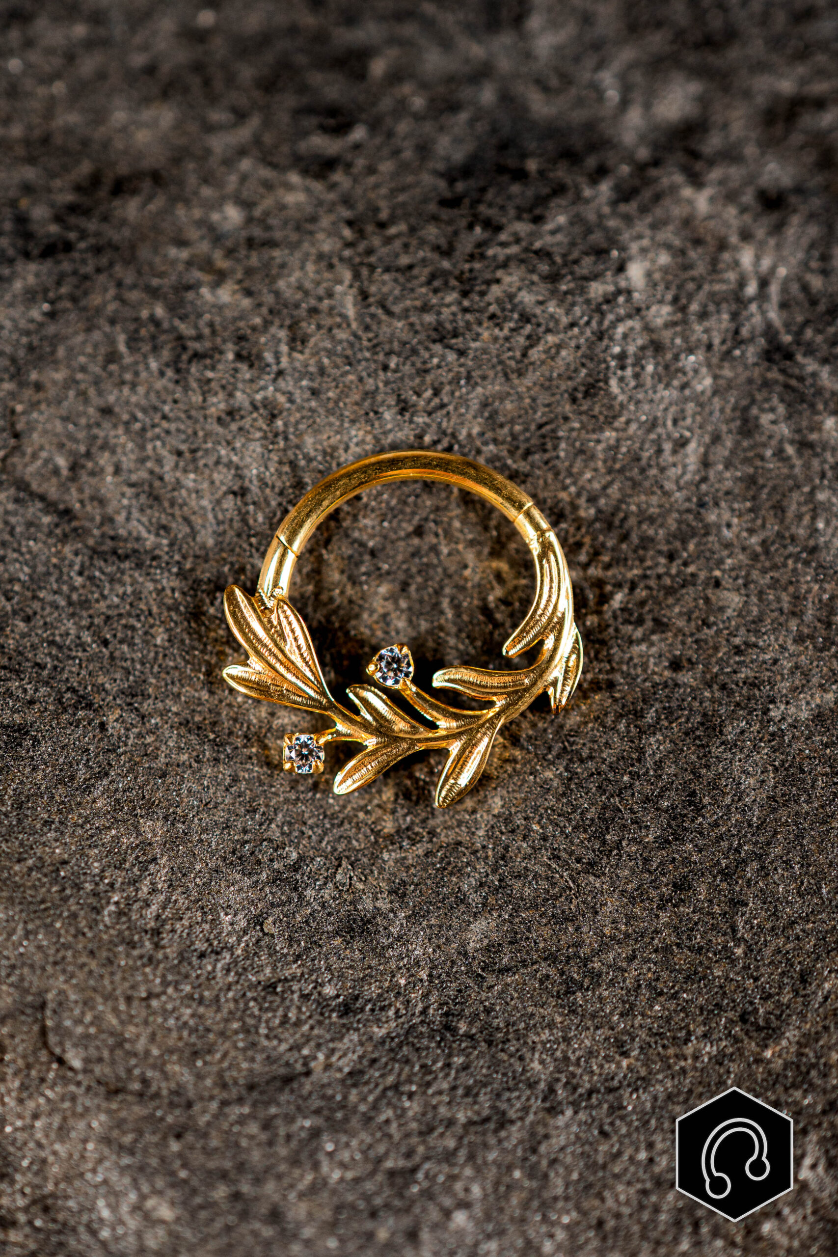 Apportez une touche raffinée et naturelle à votre piercing avec l’anneau clicker titane doré Feuillage, orné d’un délicat motif feuilles serti de zircons clairs. Son design travaillé mêle finesse et éclat subtil pour un rendu élégant. Les zircons taillés avec précision captent la lumière et soulignent les détails du motif, tout en conservant une allure harmonieuse.