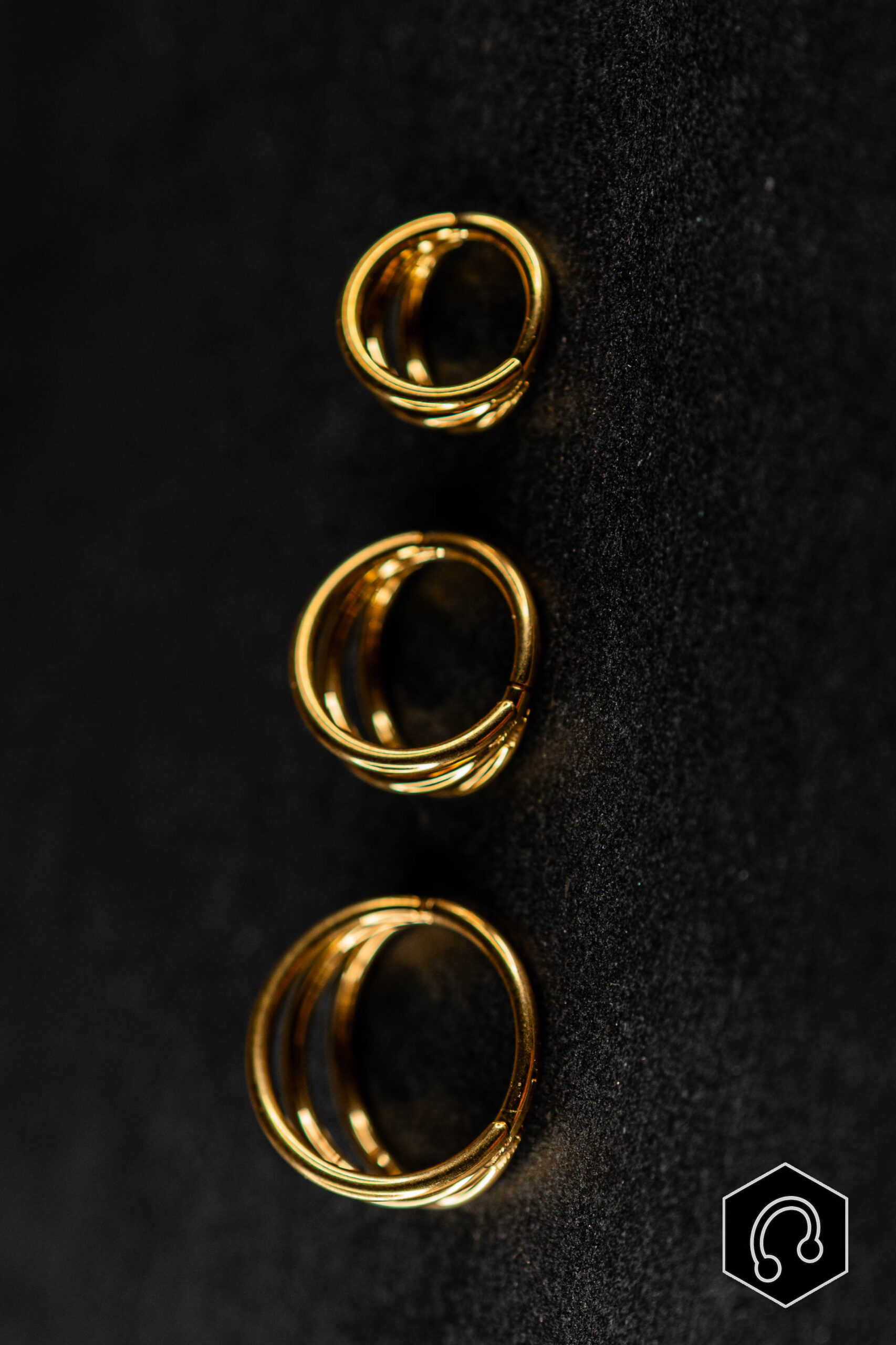 L’anneau clicker titane doré Tripple attire immédiatement l’œil par son design sculptural. Sa forme triple, crée une spirale qui enveloppe l’oreille avec originalité et modernité. Chaque ligne vient souligner la courbe naturelle de l’oreille.