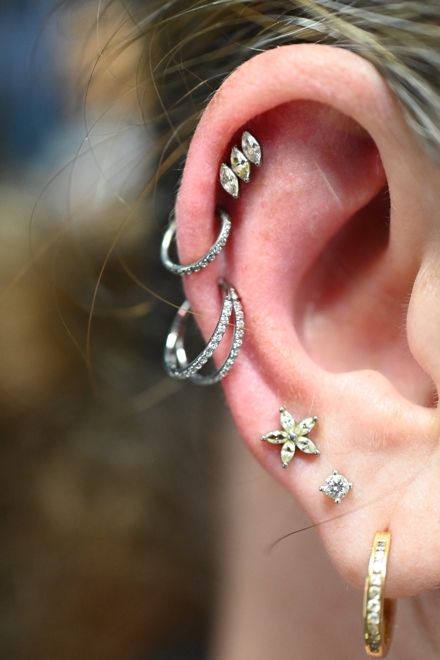 Avec son design raffiné et sa finition argentée lumineuse, Double Shimmer se prête aussi bien à un look quotidien chic qu’à une composition d’oreille plus sophistiquée. Il est parfait pour donner une touche de brillance assumée tout en restant élégant et intemporel.