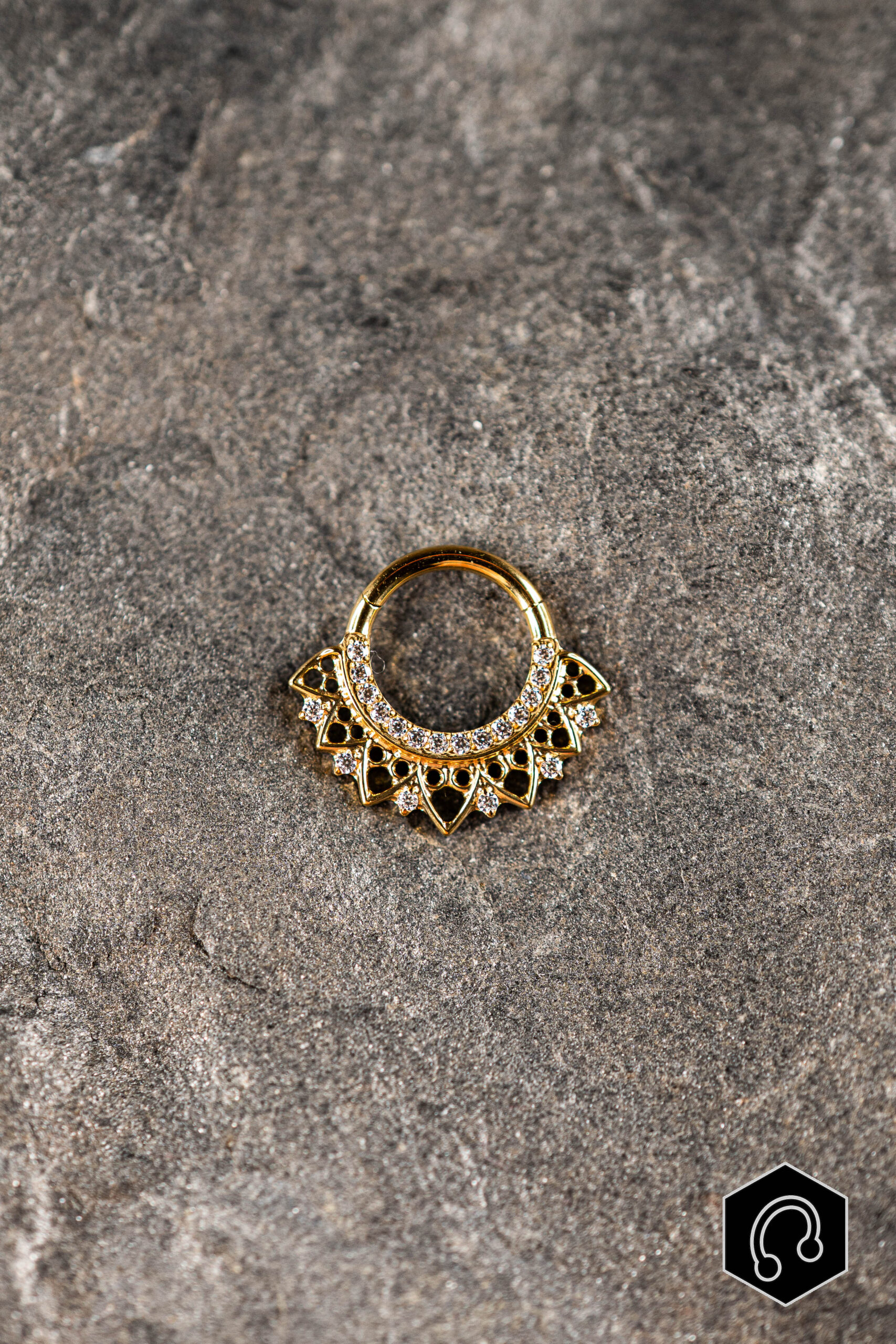 Polyvalent, Mandala Doré est particulièrement adapté aux piercings tels que le septum, le daith, l’hélix.