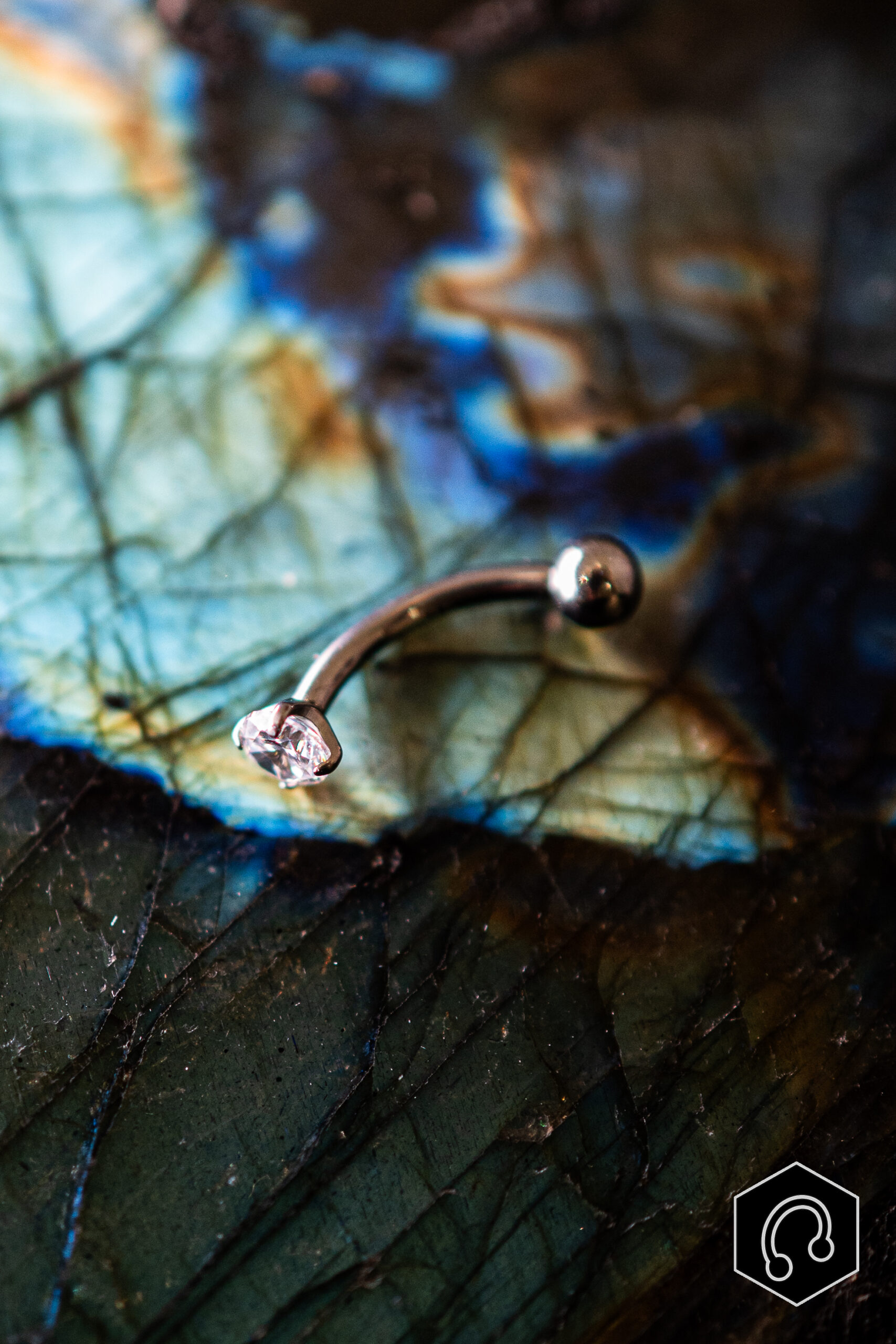 Élégante et intemporelle, la banane Lumière en titane de grade implantable allie simplicité et éclat. Son design minimaliste se compose d’une bille supérieure lisse, tandis que l’extrémité inférieure est ornée d’un cristal rond griffé, délicatement serti pour capturer la lumière sous tous les angles.