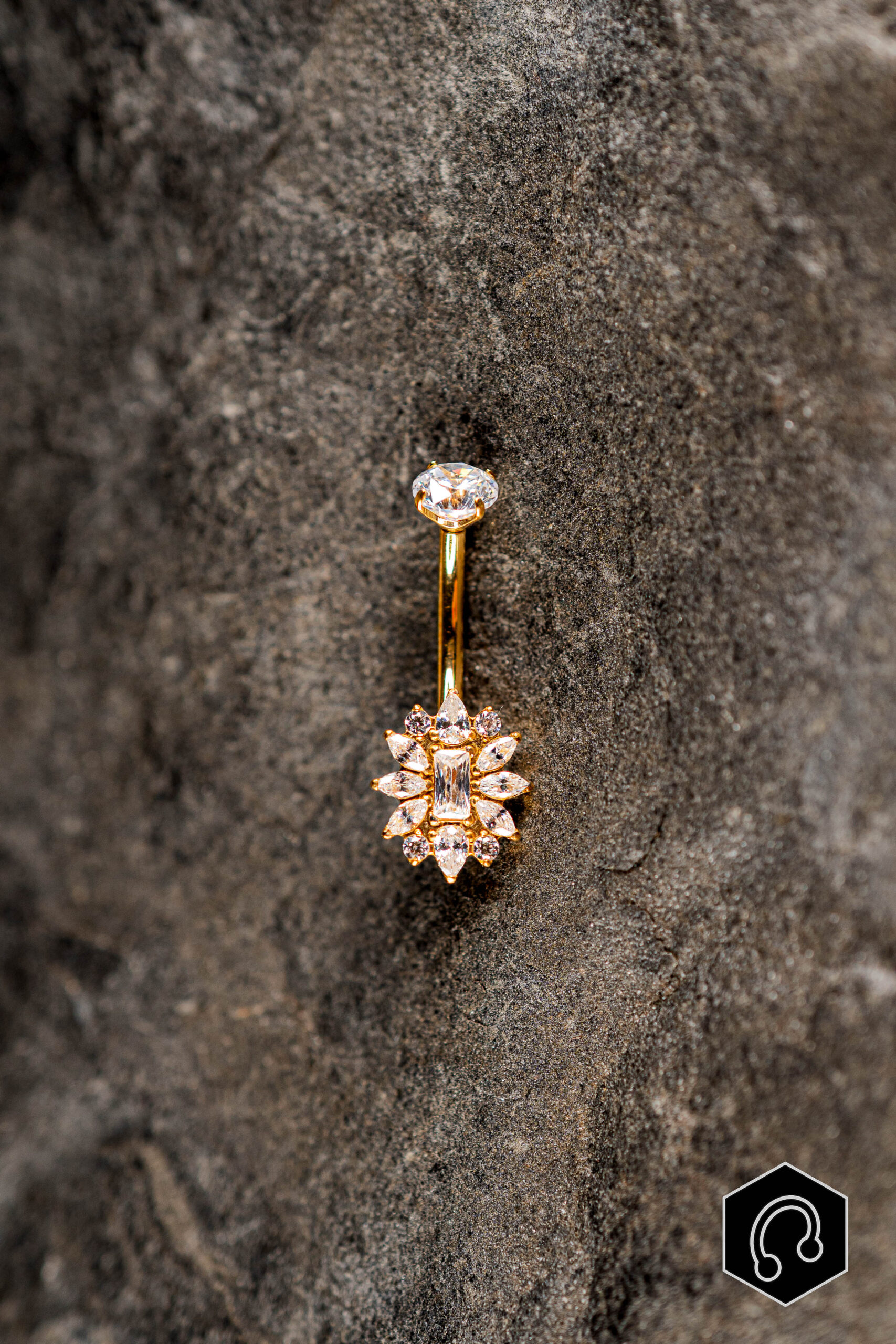 Affirmez votre style avec la banane nombril dorée Imperial Spark, un bijou au design sophistiqué et lumineux. Son motif orné de zircons facettée crée un effet éclatant et structuré, digne d’un bijou de joaillerie. Conçue en titane de grade implantable, cette banane de nombril garantit légèreté et résistance. Idéale pour les peaux sensibles, elle offre un confort durable au quotidien.