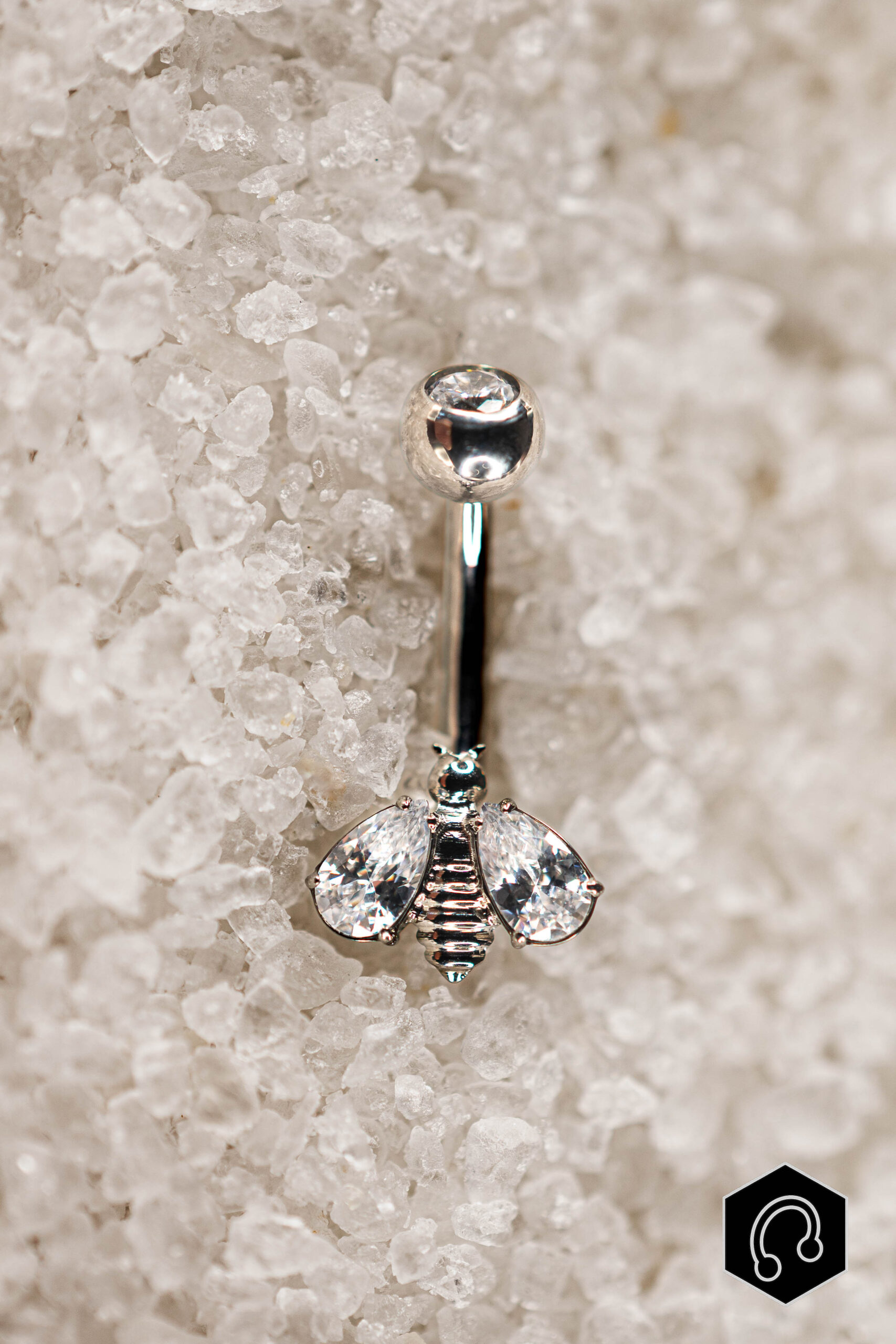 Brille comme une reine avec la banane nombril titane argenté Bee. Un bijou délicat et plein de caractère, son motif d’abeille minutieusement serti de zircons symbolise la force, la féminité et la douceur. Chaque détail de ses ailes capte la lumière, créant un éclat luxueux et hypnotique.