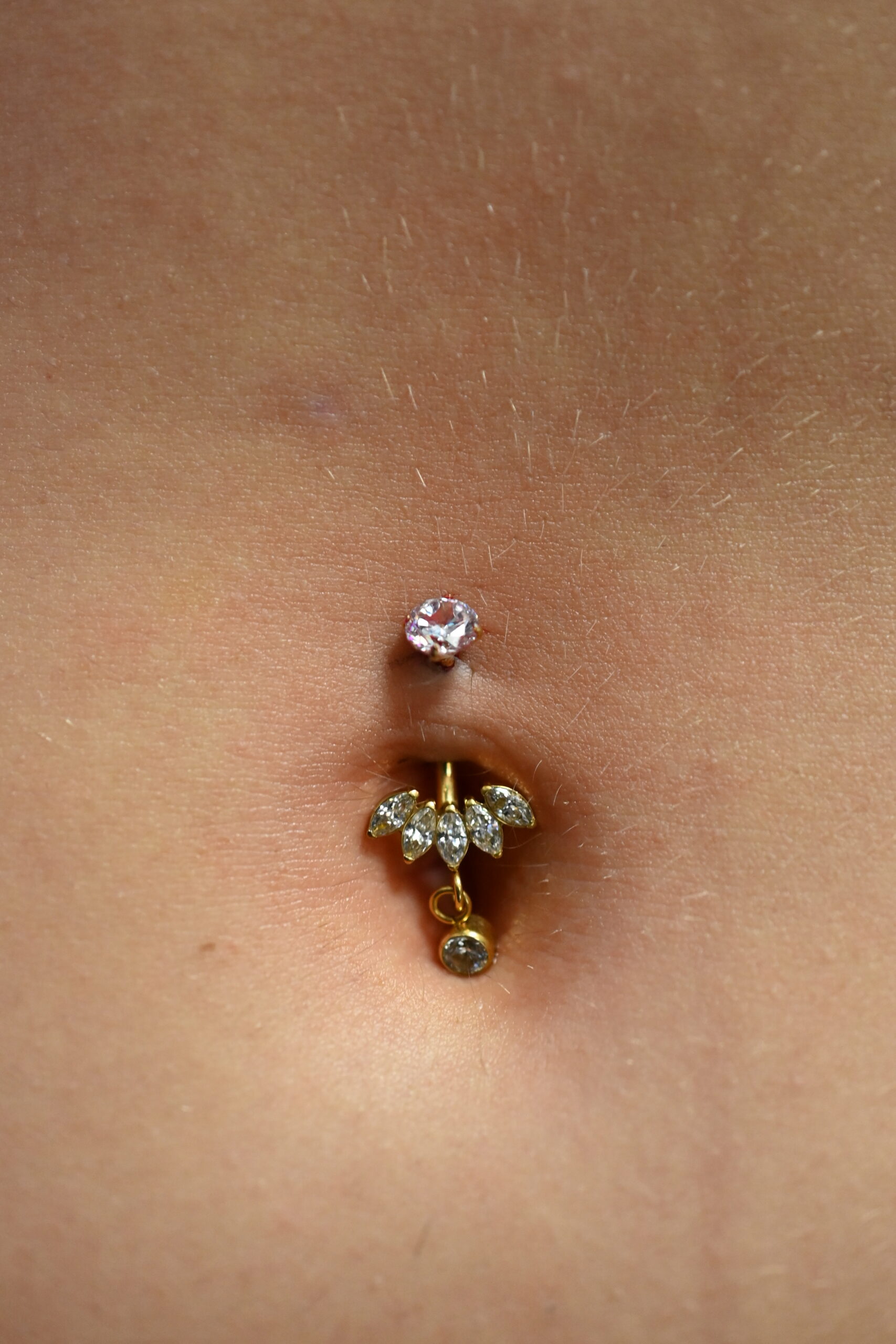 Sa finition dorée ajoute une touche précieuse et lumineuse qui sublime le nombril avec discrétion et sophistication.