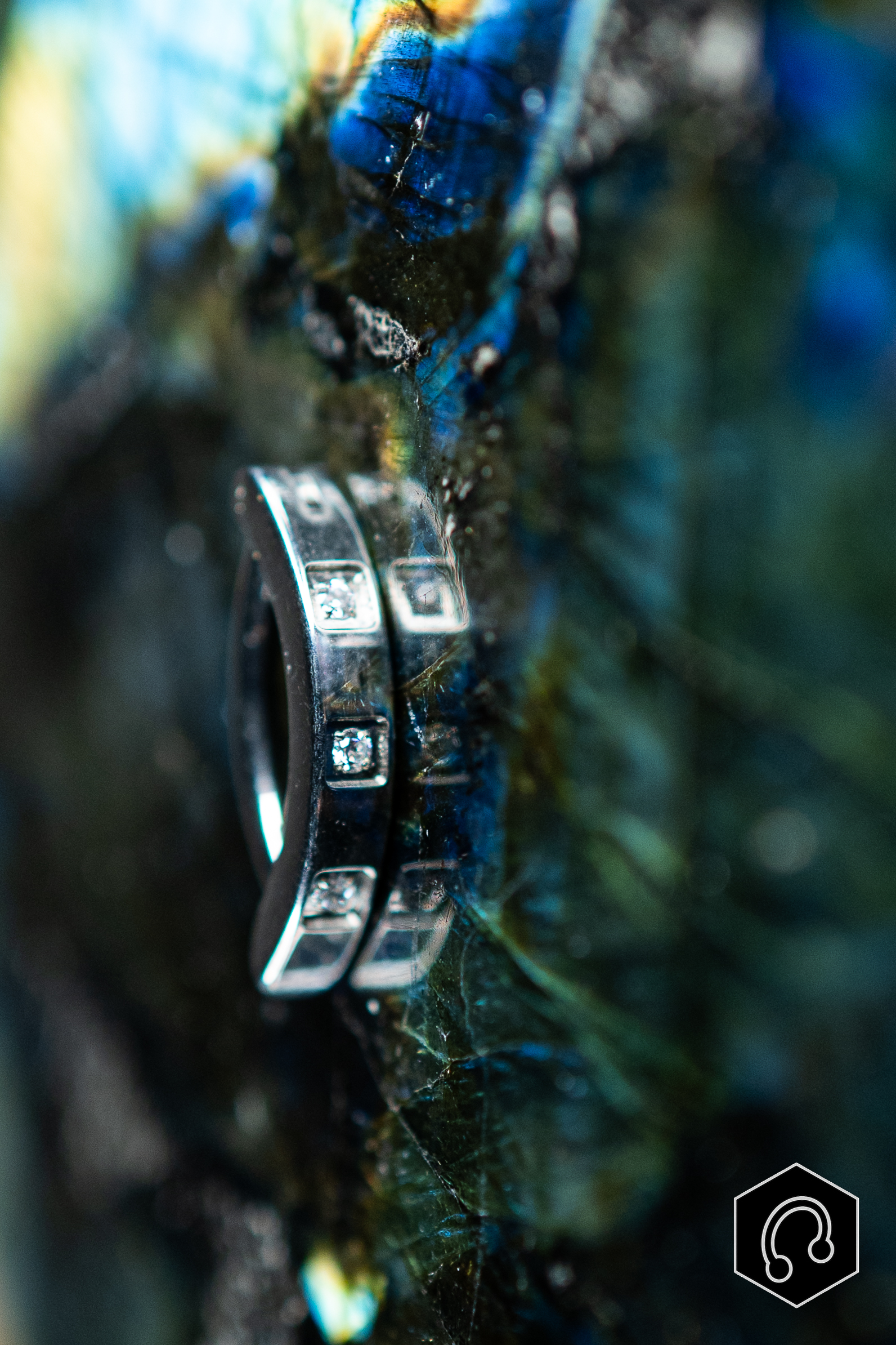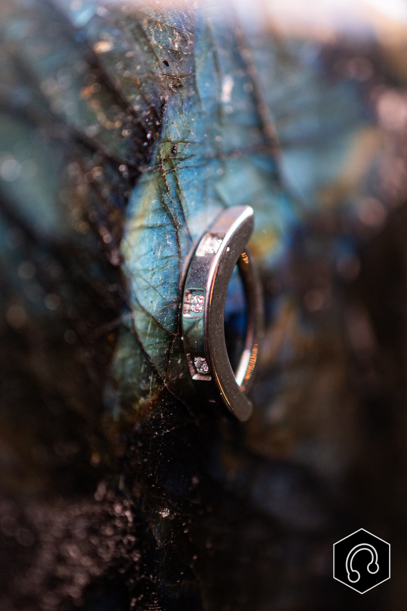 Simplicité et géométrie s’allient dans cette banane de nombril en titane, ponctuée de strass délicatement sertis dans un alignement régulier.