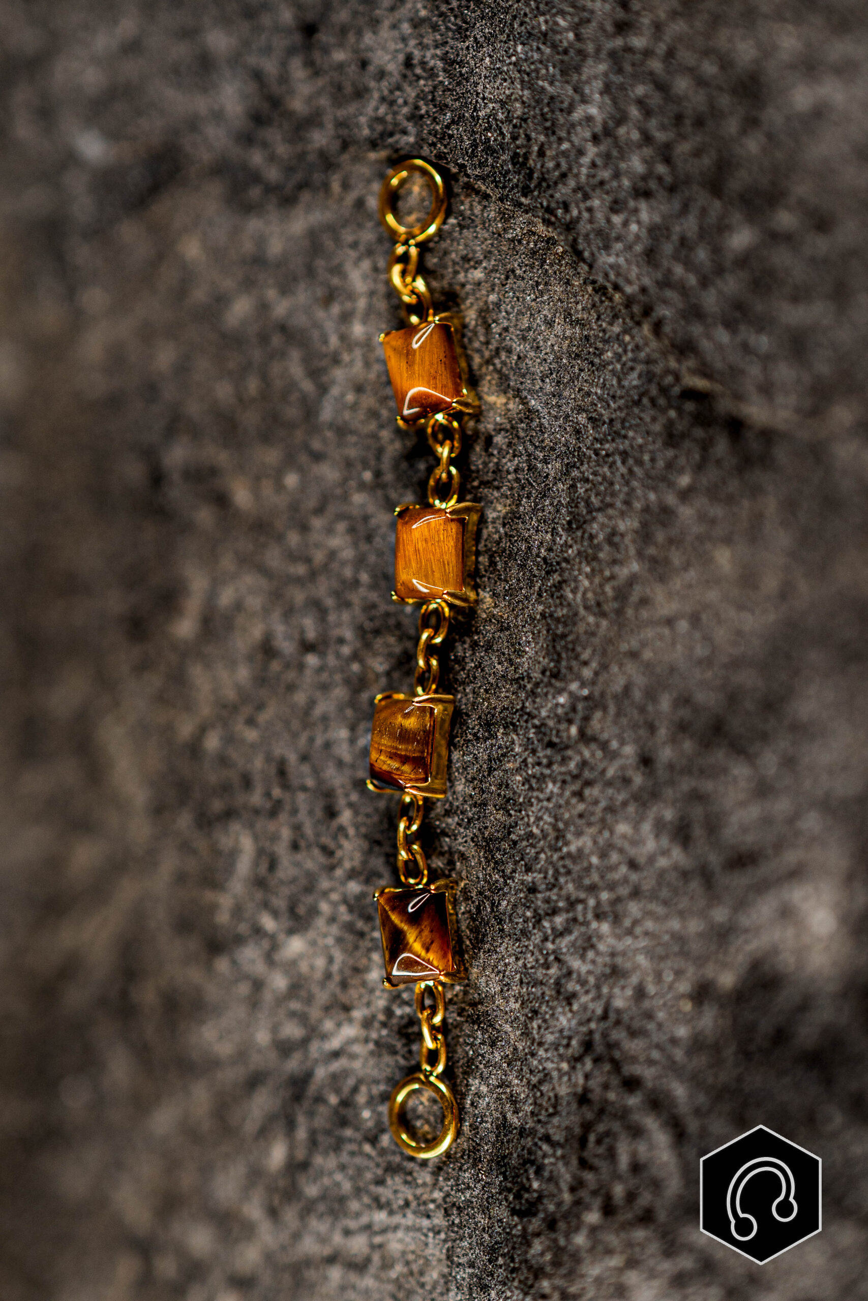 Sublime ton piercing avec la chaine doré pierres naturelles Tiger Eye, hypoallergénique ornée de pierres naturelles.
