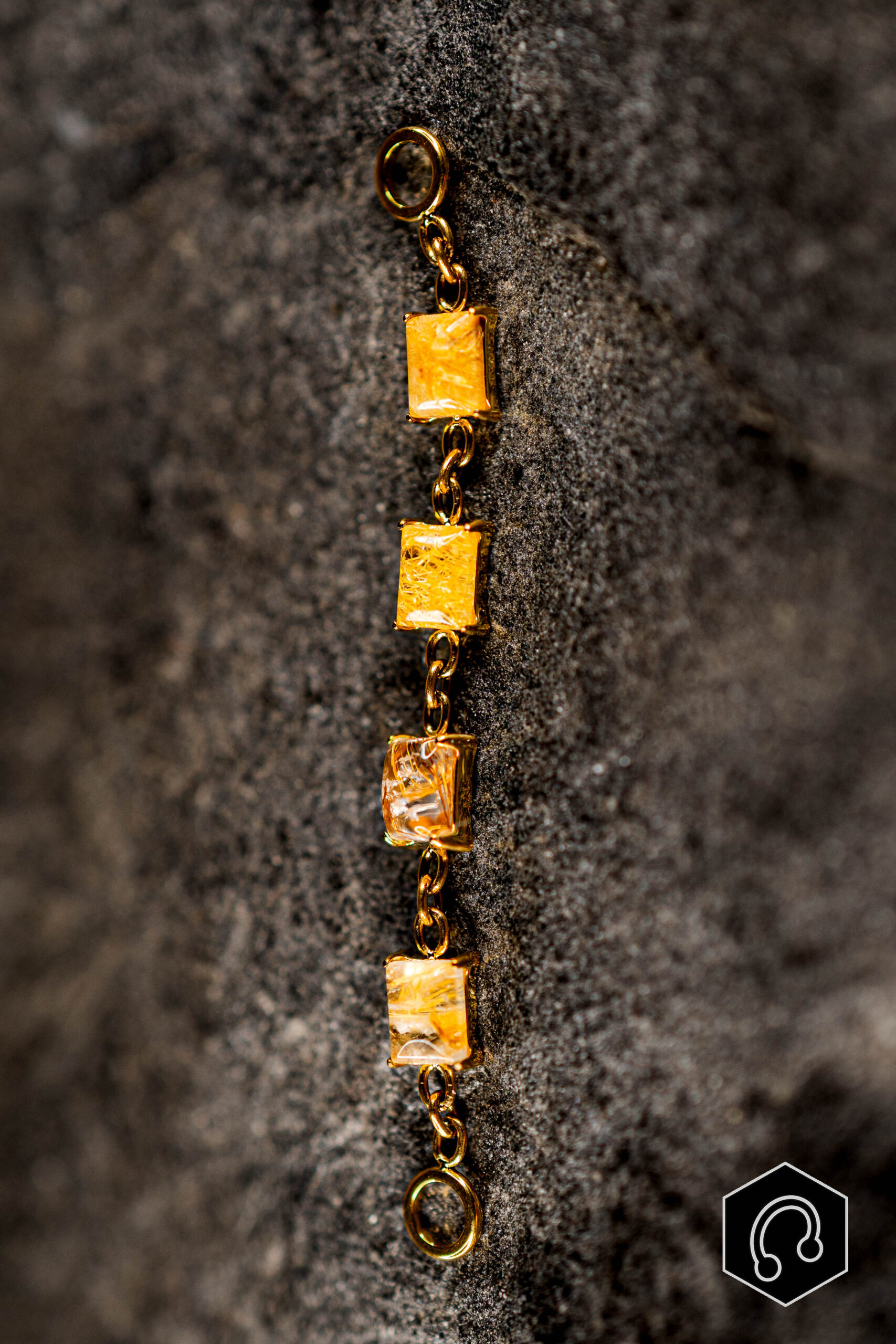 Sublime ton piercing avec la chaine doré pierres Quartz Rutile, hypoallergénique ornée de pierres naturelles.