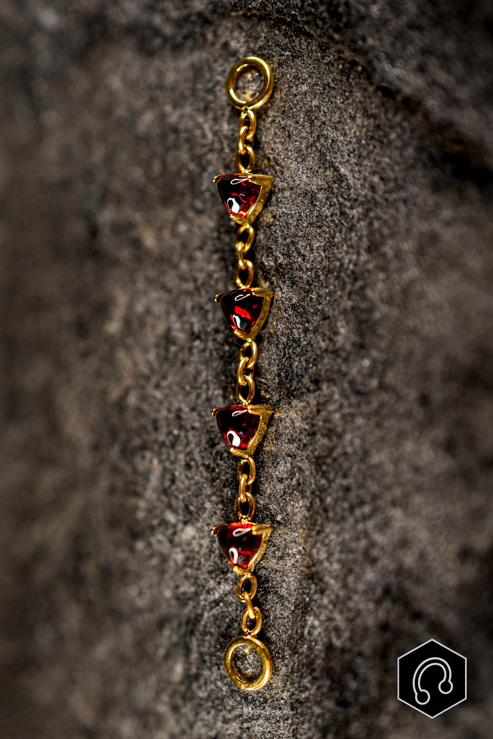 Sublime ton piercing avec la chaine doré pierres triangles Grenat, hypoallergénique ornée de pierres naturelles.