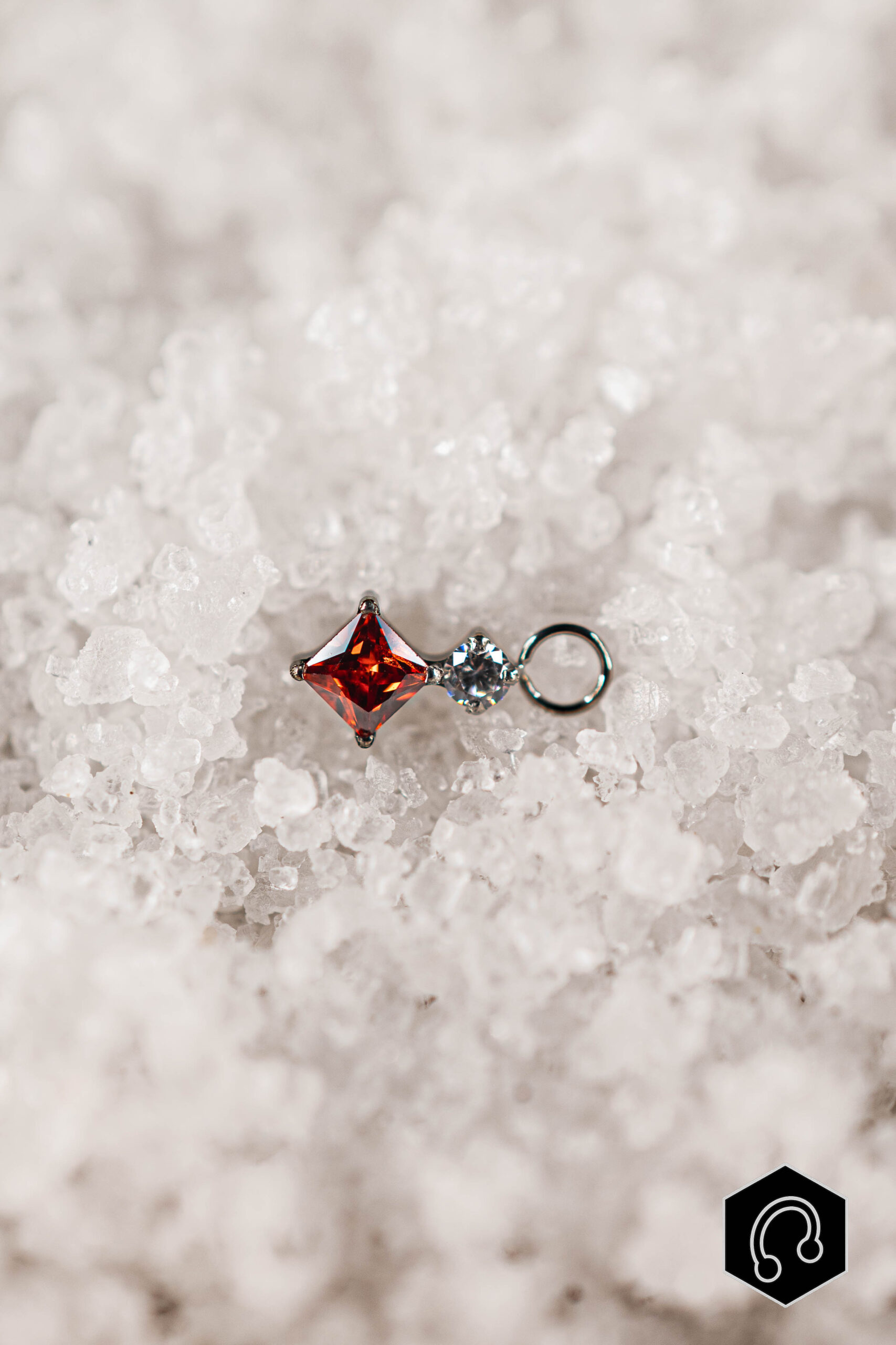 Élégant sans être excessif, ce charm joue sur le contraste entre la profondeur de la pierre et l’éclat discret du zircon. Son format fin et harmonieux en fait un bijou facile à associer, parfait pour personnaliser un piercing avec raffinement.