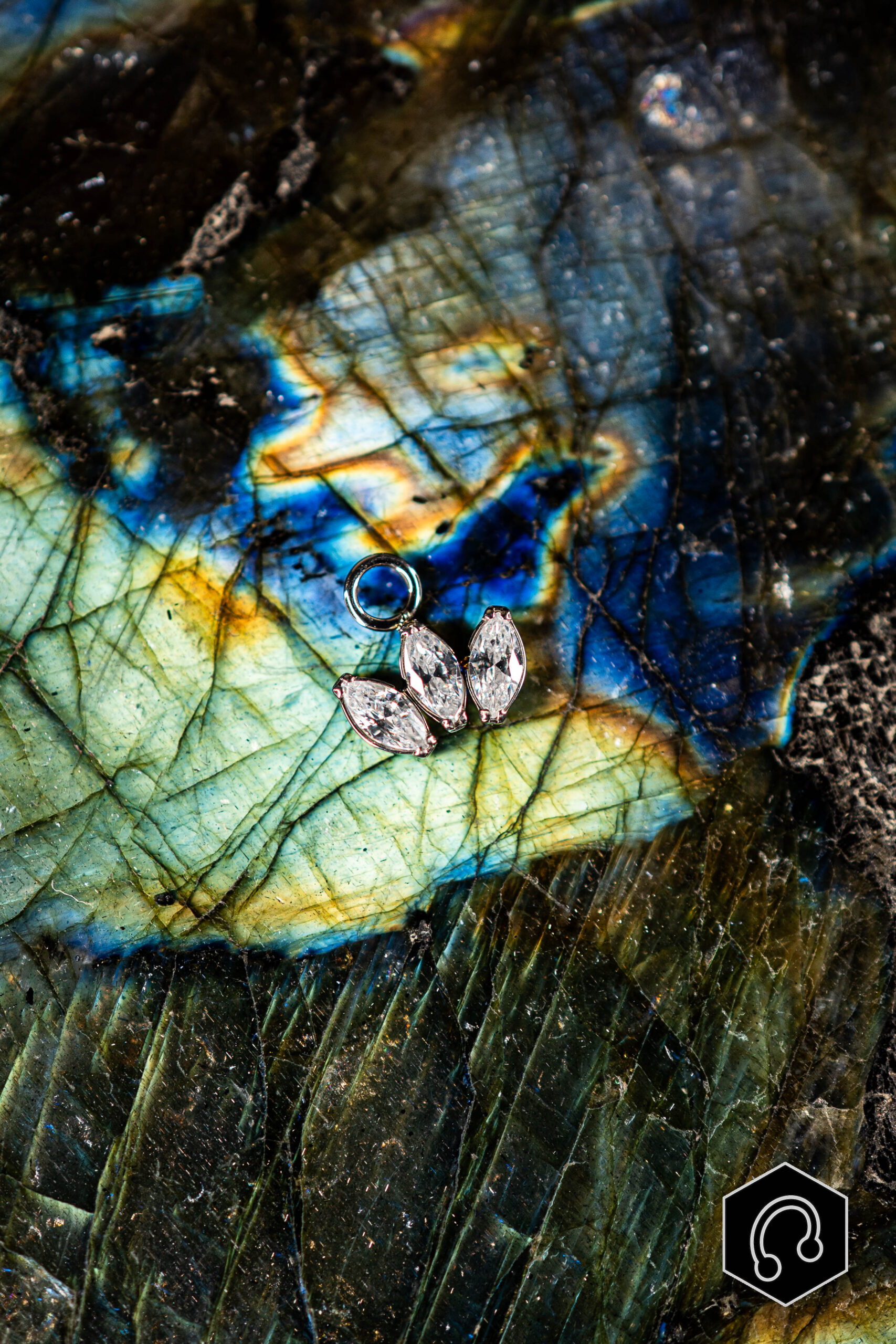 Leur agencement délicat crée un effet floral raffiné, parfait pour sublimer un piercing d’oreille ou de nombril.
