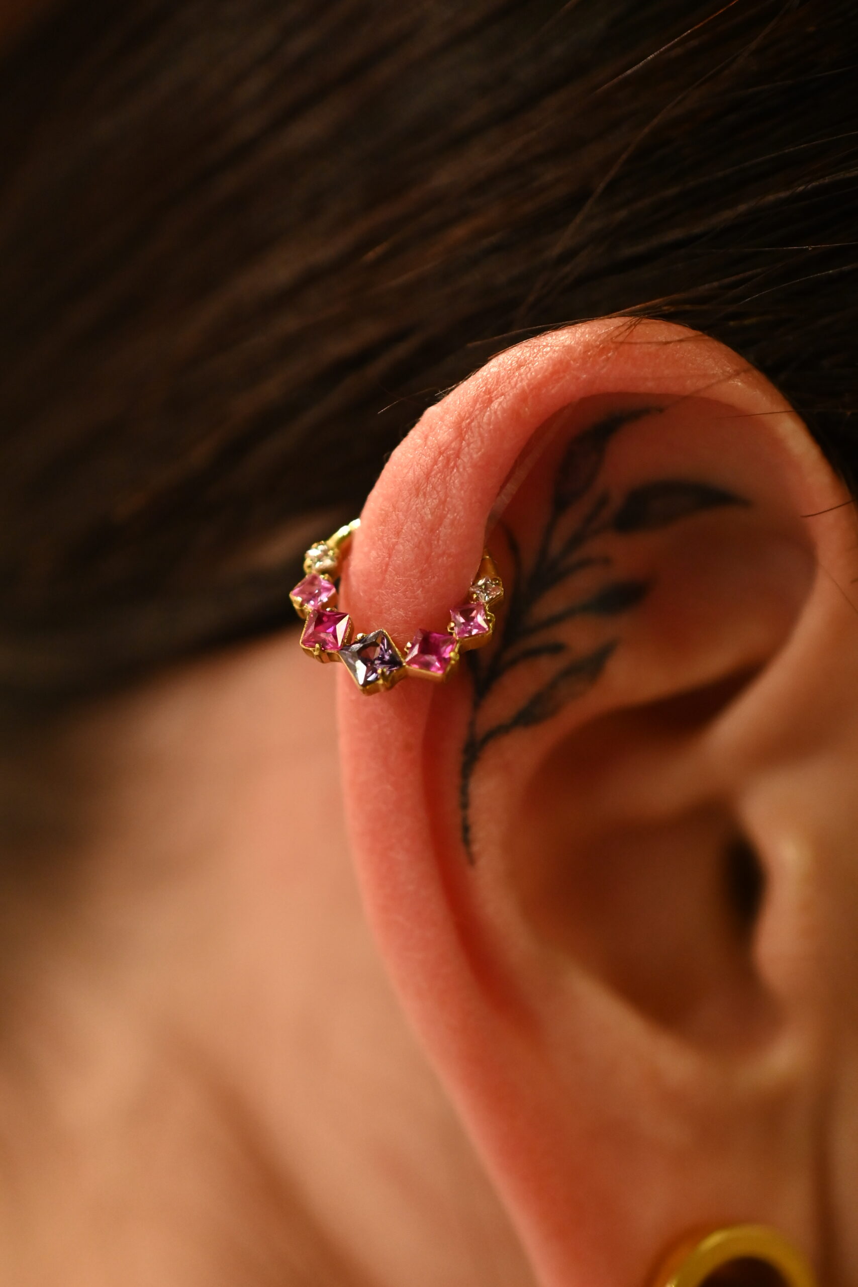 Ce bijou de piercing en titane doré est conçu pour durer et sublimer toutes les oreilles, qu’il soit porté seul ou associé à d’autres anneaux raffinés.