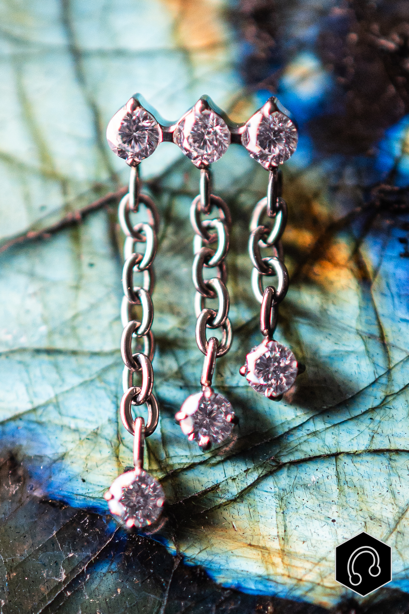 Ce labret en titane haute qualité se distingue par ses trois chaînes souples ornées de strass éclatants, apportant du relief et de la brillance à votre look.Son design fluide et raffiné capte la lumière à chaque geste, pour une touche sophistiquée et affirmée, sans en faire trop.