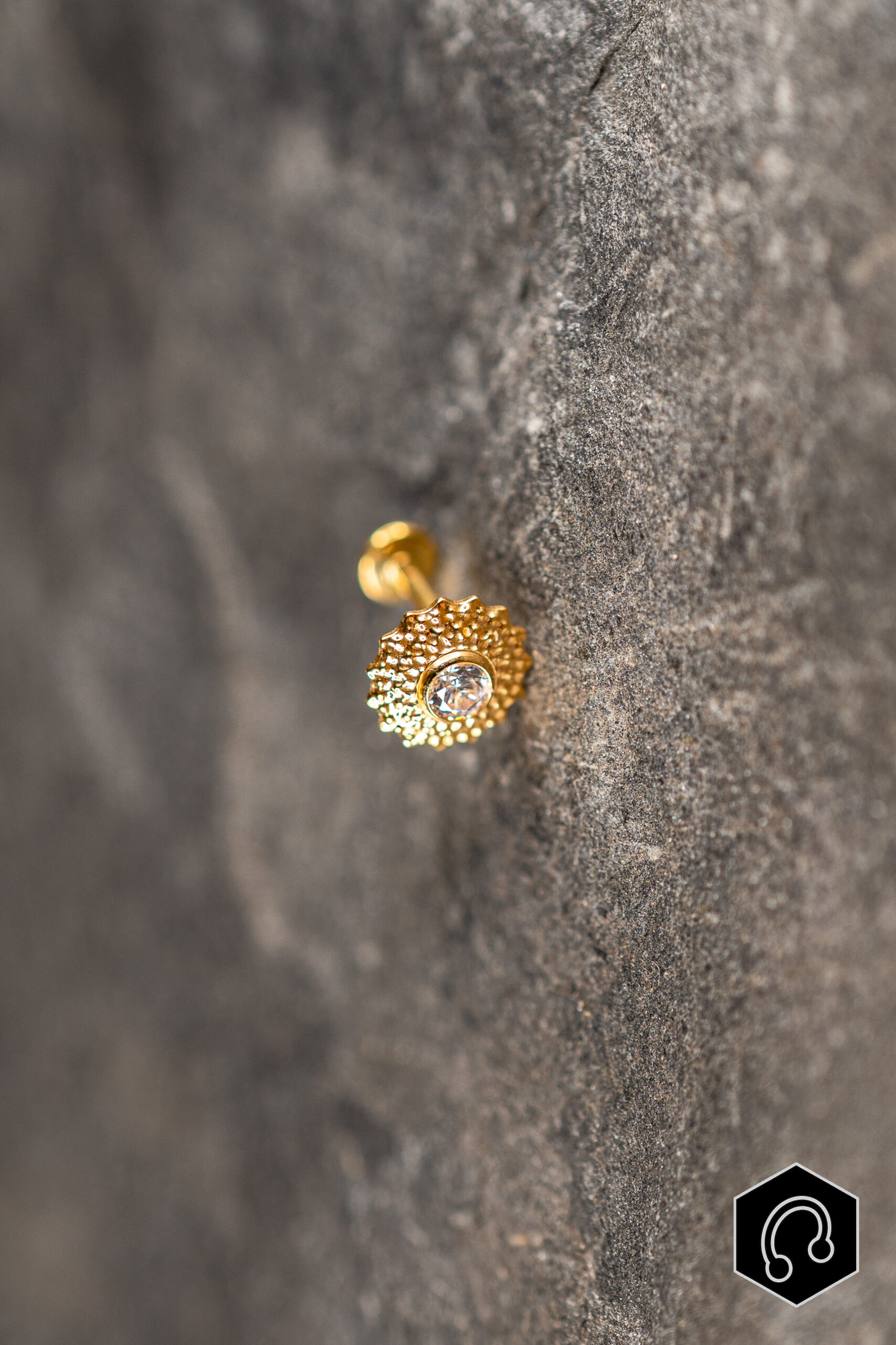 Labret titane doré Isadora, le prix varie selon la taille, la couleur et l’option stérile (+5 €).