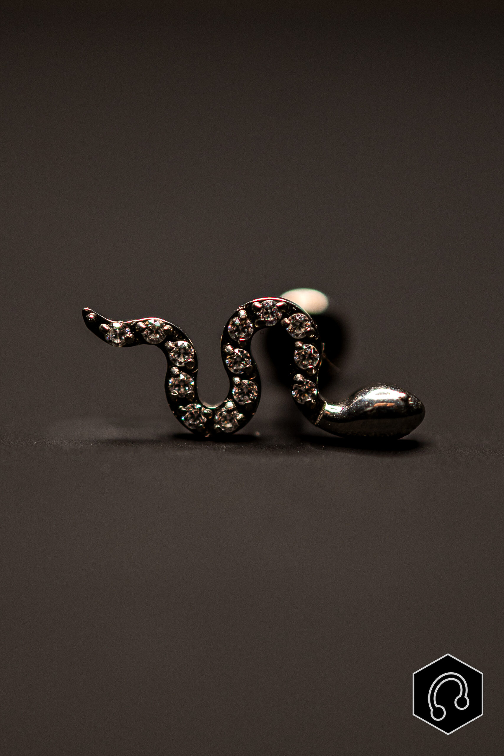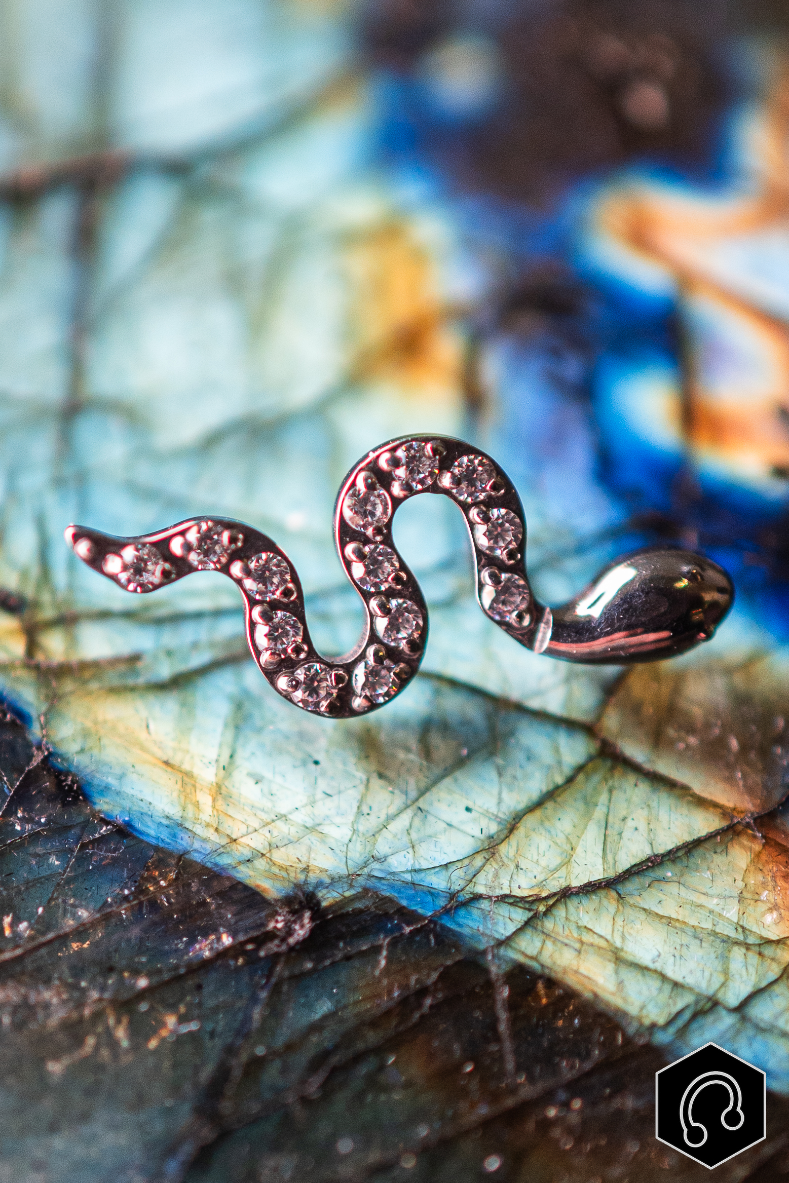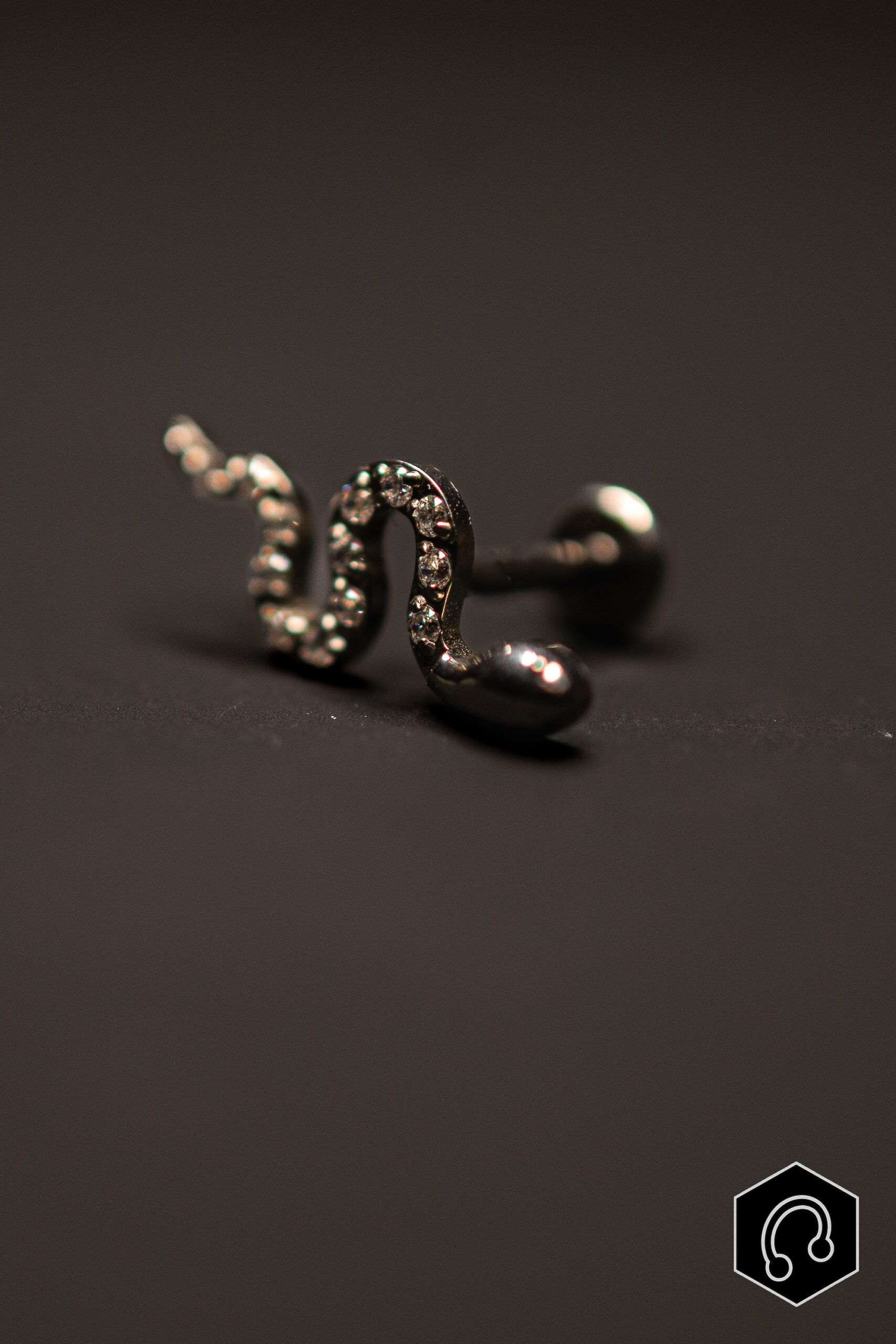 Laissez-vous envoûter par le charme d’Ophidia, un labret en titane haut de gamme orné de zircons. Sa forme symbolise la transformation et la puissance intérieure.