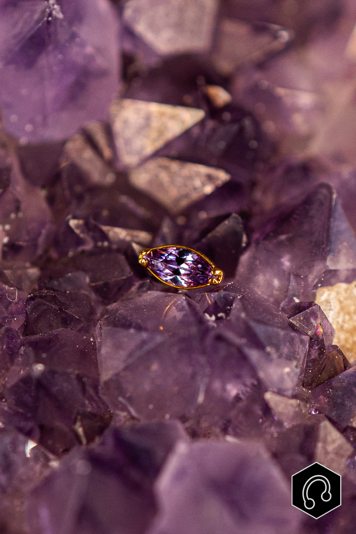 Élégance et raffinement s’invitent dans ce labret en titane doré.