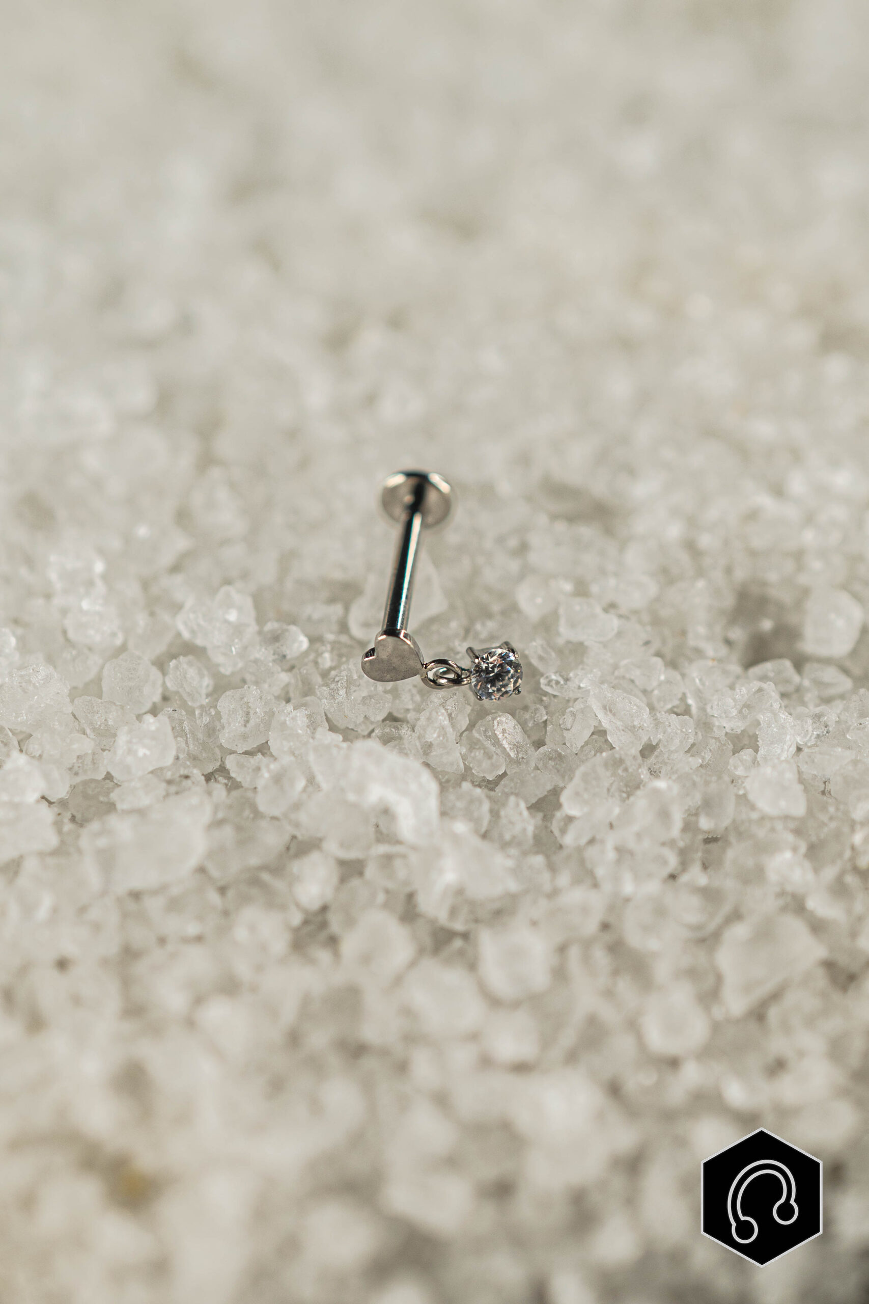 Le labret Célia Love charme par son design délicat et plein de douceur. Son petit cœur apporte une touche tendre et élégante, tandis que le strass suspendu capte la lumière à chaque mouvement, créant un effet subtil et lumineux.