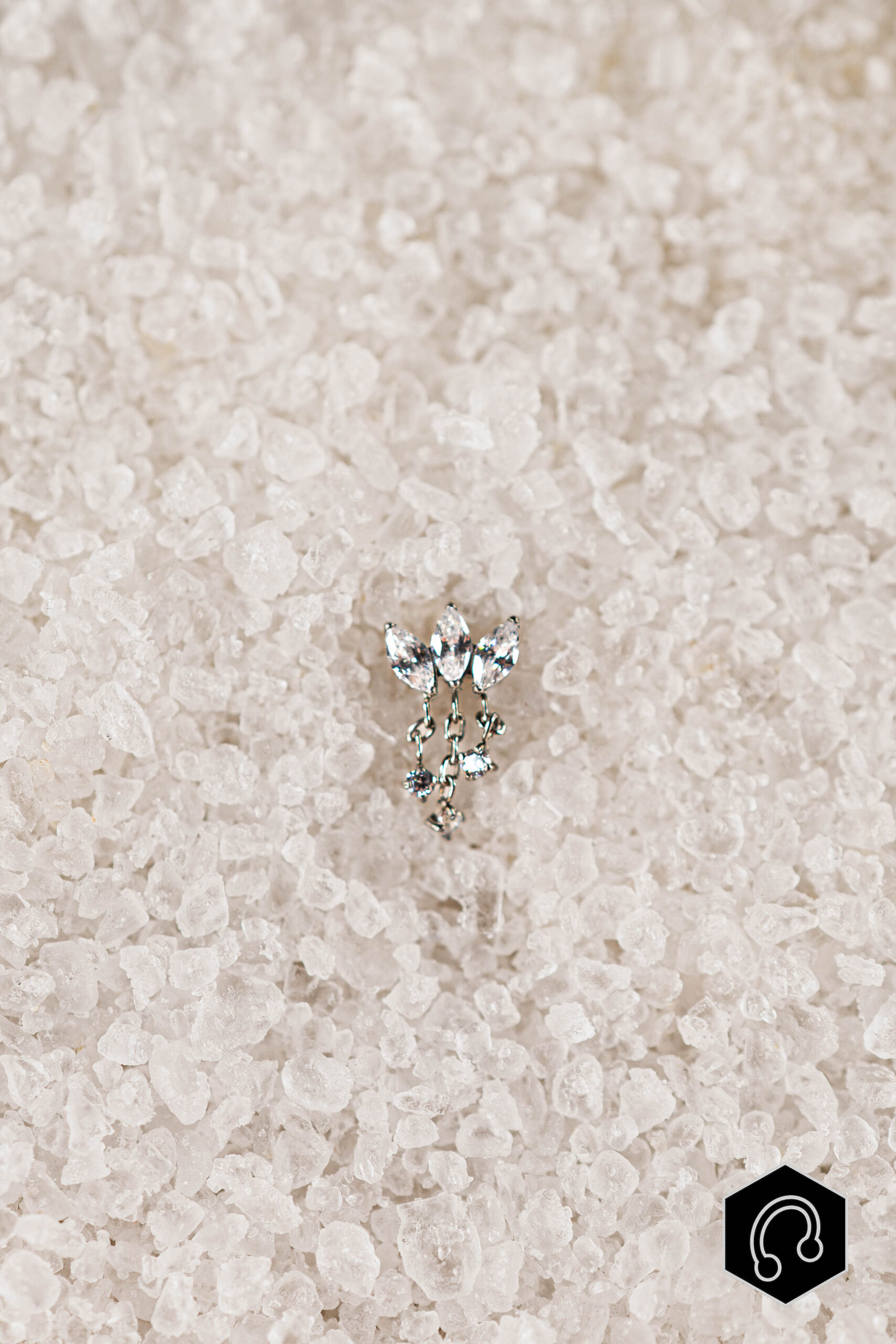 Le labret titane argenté Lysia Drop séduit par son design fin et aérien. Composé de zircons taillés en marquise, il offre une silhouette élancée et lumineuse, rehaussée par de délicates chaînettes. Ses mouvements subtils crées un effet fluide et élégant, parfait pour apporter du relief et de la douceur à un piercing.