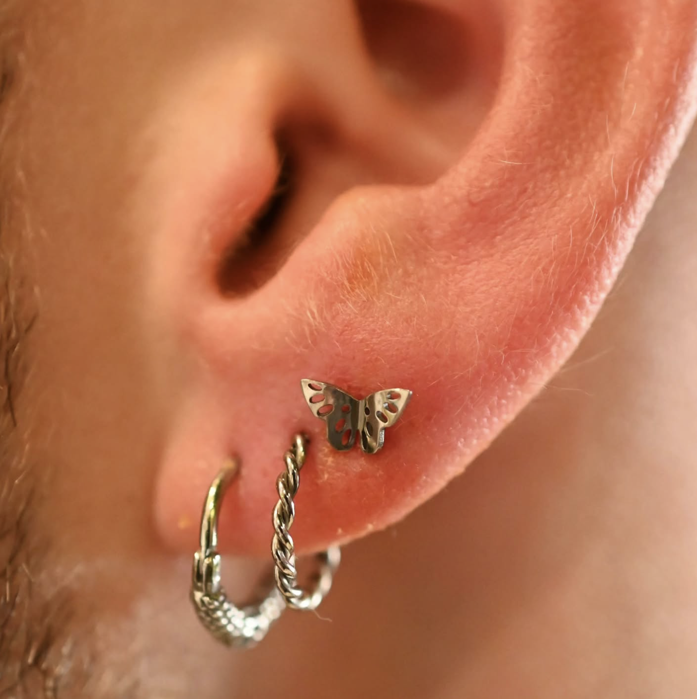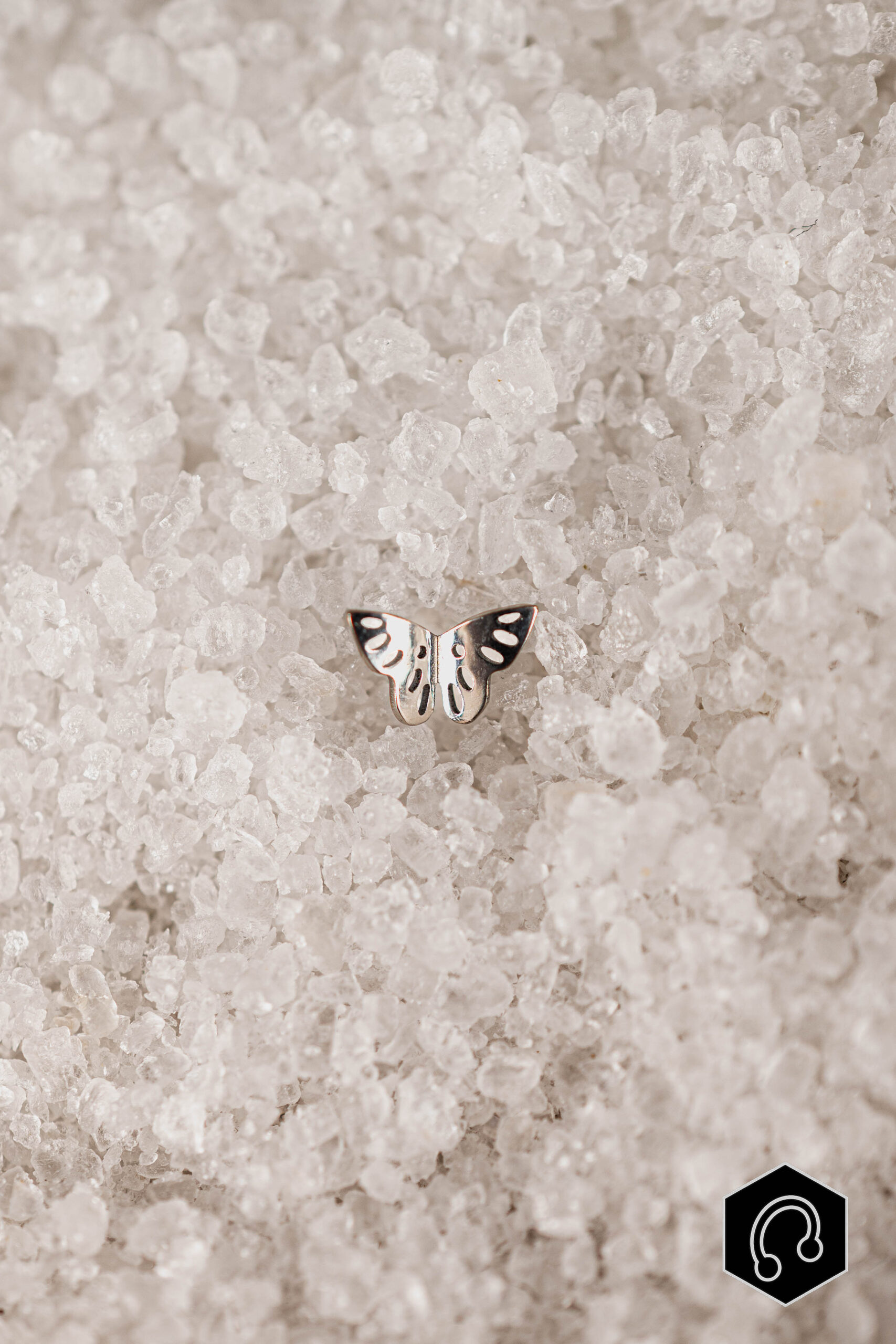 Le labret en titane argenté Papillon Ajouré séduit par son motif délicat. Son design léger et en relief apporte une touche poétique et raffinée, tout en restant discret et élégant une fois porté.