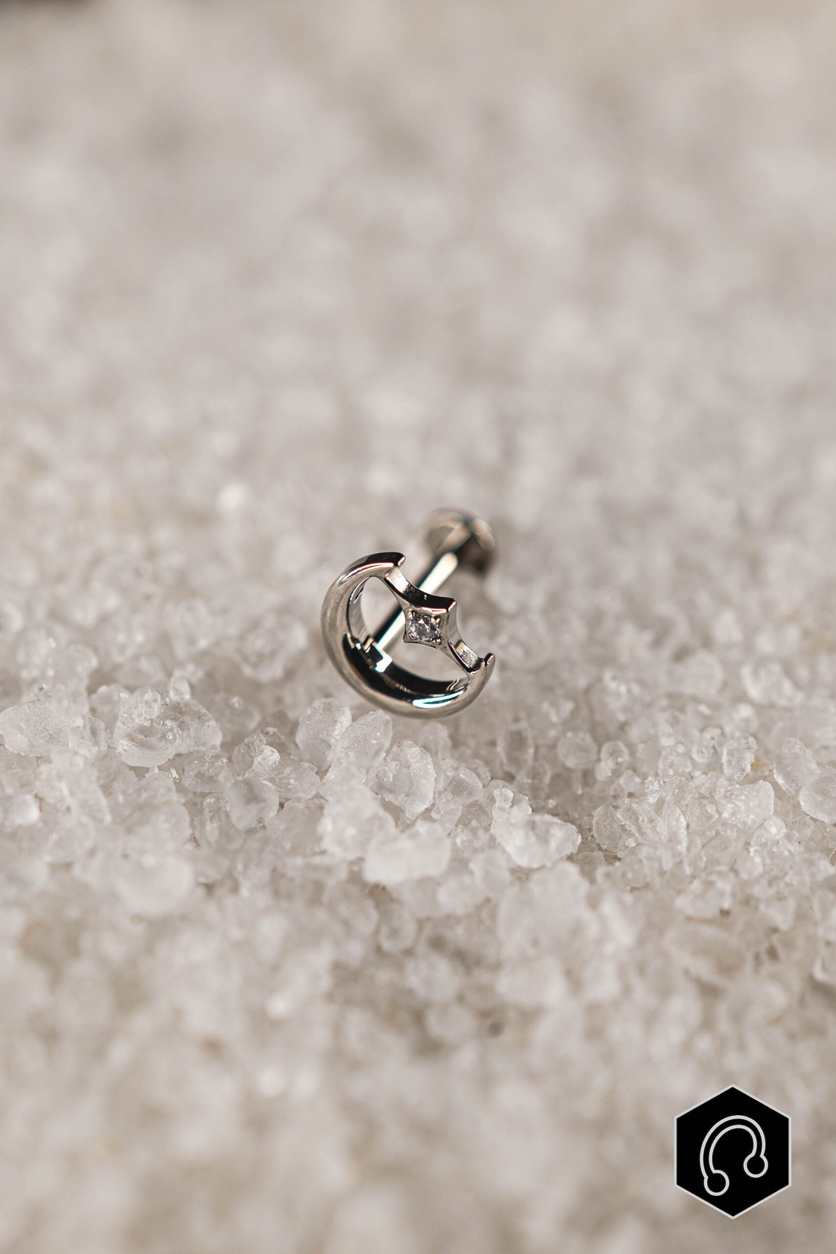 Le labret titane argenté Selmyra Moon séduit par son design délicat. Inspiré par la douceur célestes, il apporte une touche subtile et raffinée, idéale pour celles et ceux qui recherchent un bijou à la fois symbolique et élégant.