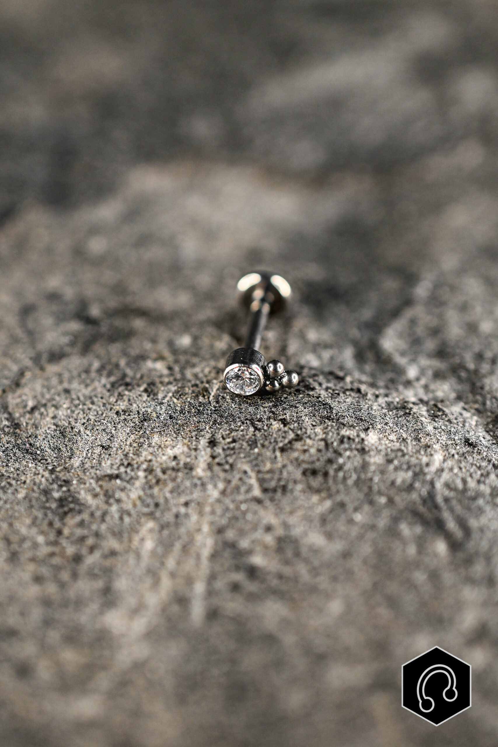 Sa taille discrète et son esthétique douce en font un choix parfait pour un piercing tragus, anti-hélix, hélix, flat, conch, lobe, tour de bouche, narine (en 1.2mm). Porté seul, il apporte une touche chic et lumineuse, associé à d’autres bijoux, il complète harmonieusement une composition d’oreille moderne et élégante.