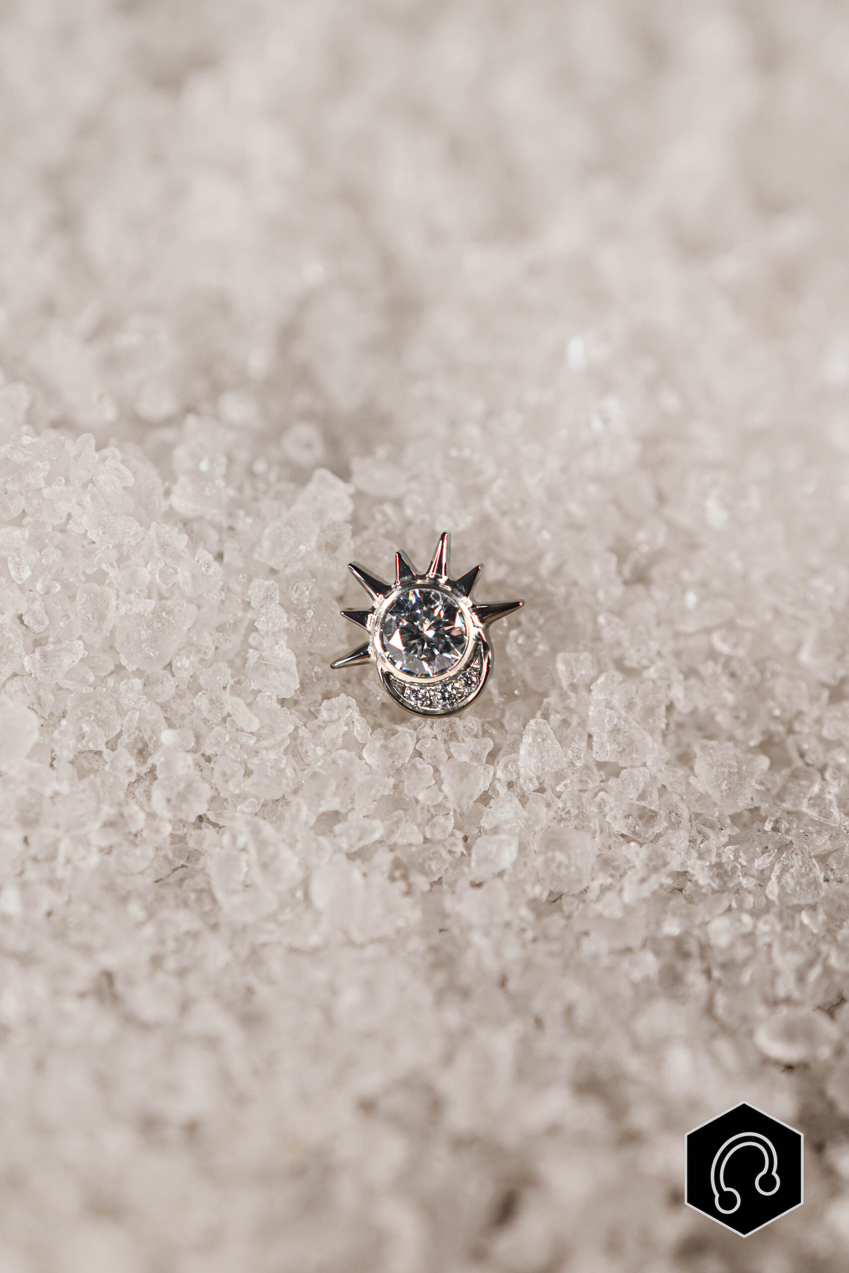 Le labret titane argenté Solarys attire le regard par son design lumineux. En son centre, un zircon clair entouré de pointes délicates qui lui donnent une allure graphique et affirmée.