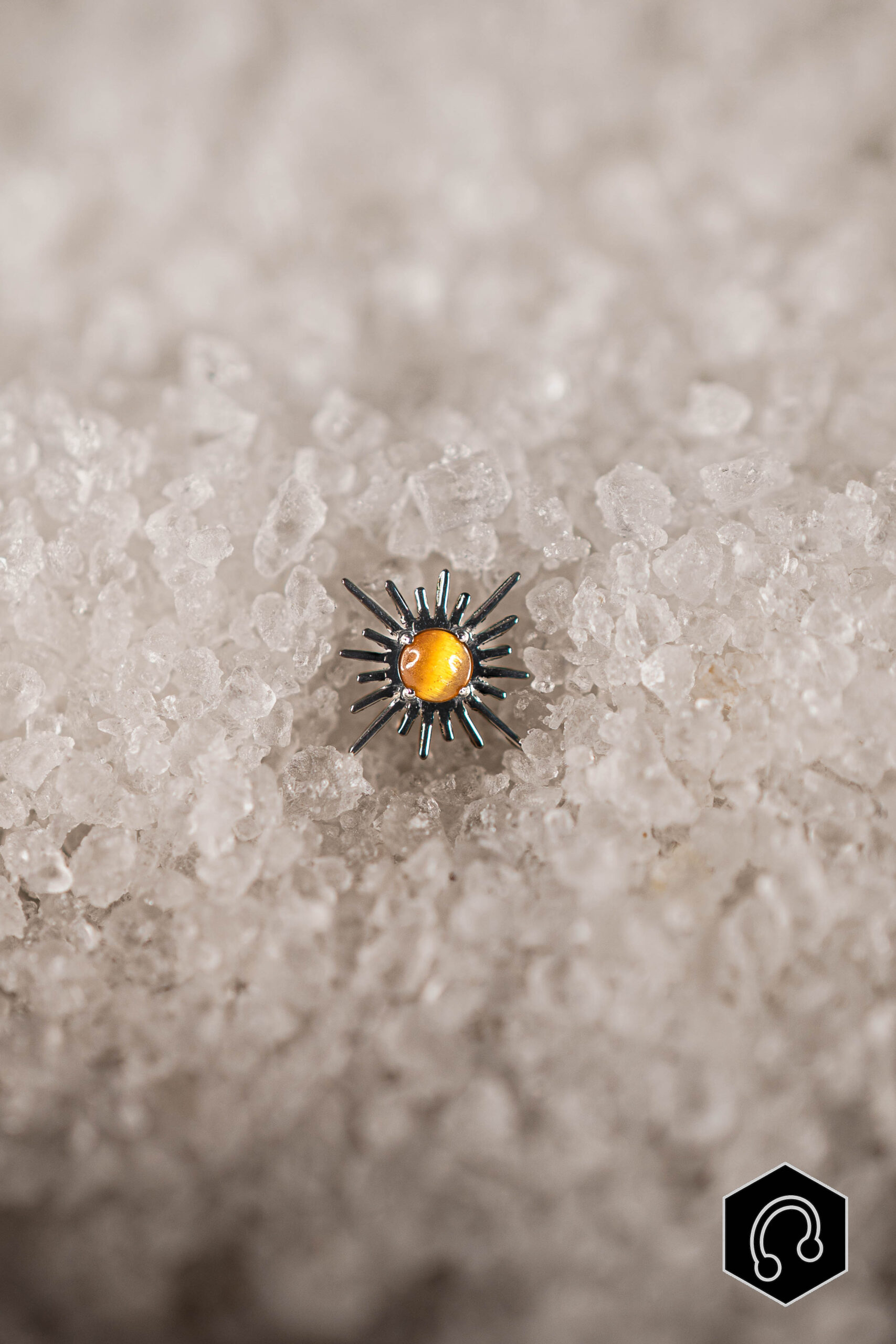 Ce bijou évoque la force intérieure et le courage. Chaque pierre, aux reflets uniques, capte la lumière différemment, faisant de chaque Brown Solaris une pièce singulière et précieuse. Son design, à la fois audacieux et raffiné, attire le regard tout en sublimant vos piercings avec un éclat moderne et élégant.