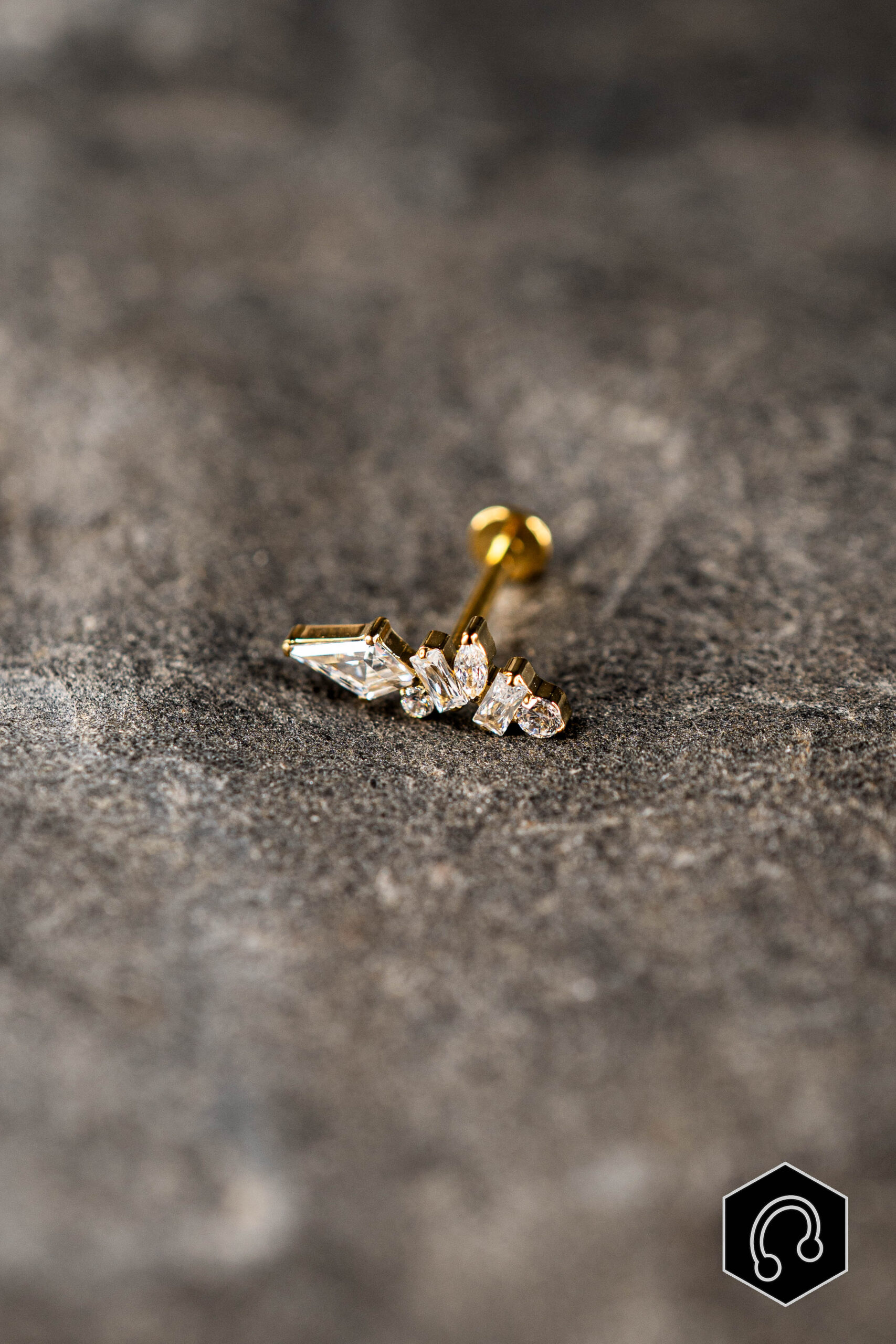 Sa finition dorée met en valeur l’éclat des zircons tout en conservant une grande finesse. Discret mais lumineux, Auryx Line est idéal pour sublimer les piercings du cartilage ou du lobe, porté seul ou en association avec d’autres bijoux.