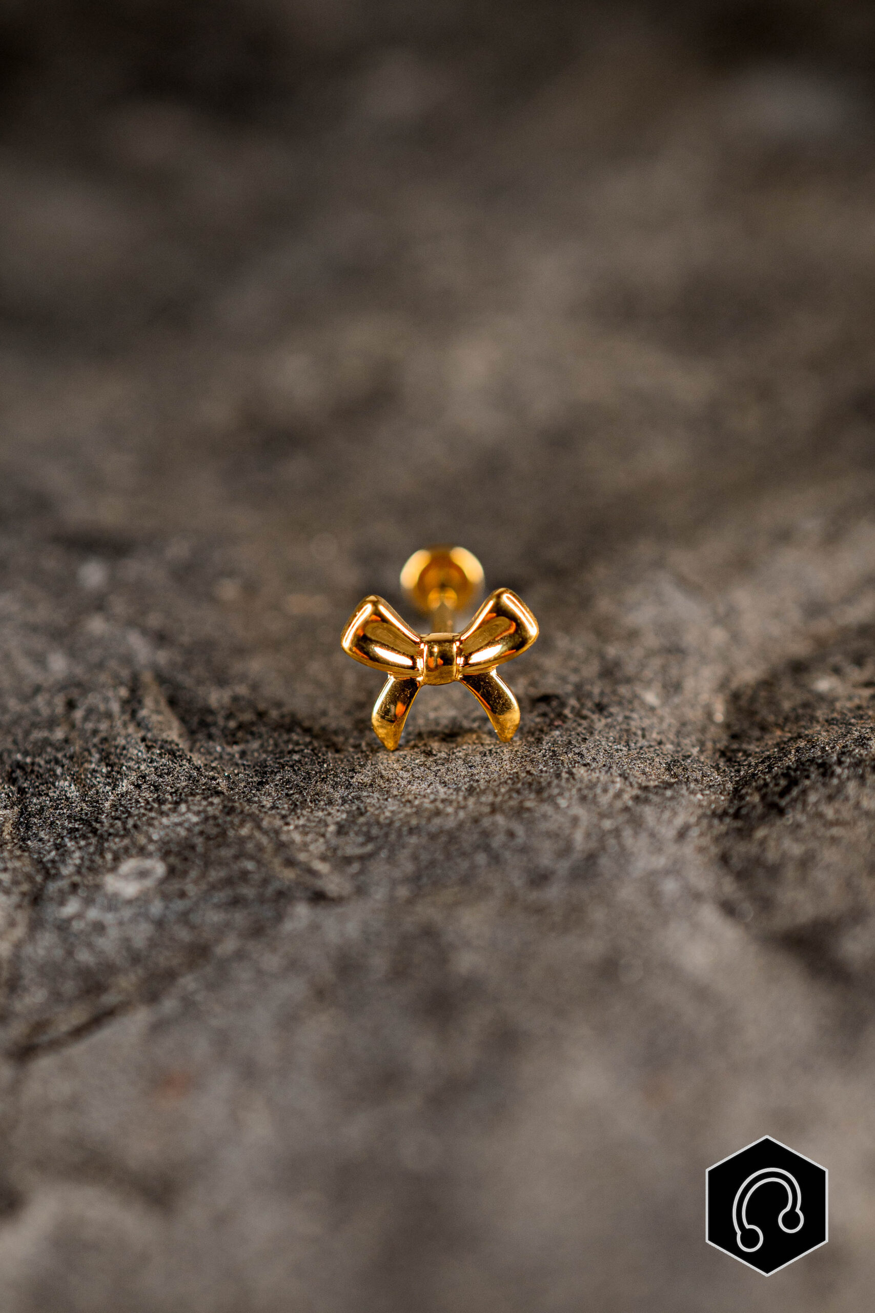 Apportez une touche délicate et féminine à votre piercing avec le labret titane doré Bella Knot, en forme de petit nœud élégant.