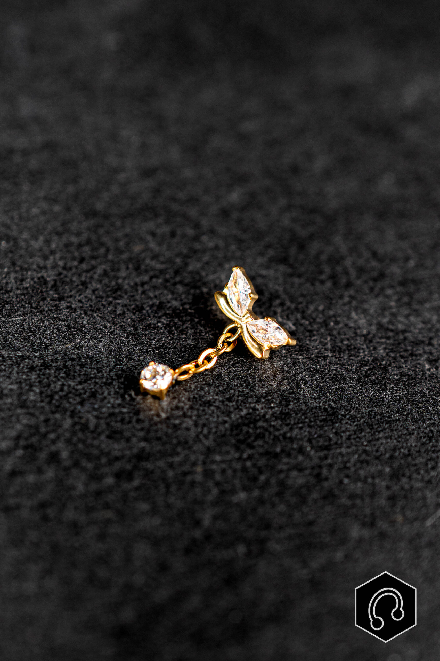 Apportez une touche d’élégance à votre look avec le labret Titane doré Flutter Drop. Son design raffiné en forme de papillon est sublimé par un délicat pendentif serti d’un zircon, apportant mouvement et brillance à chacun de vos mouvements.