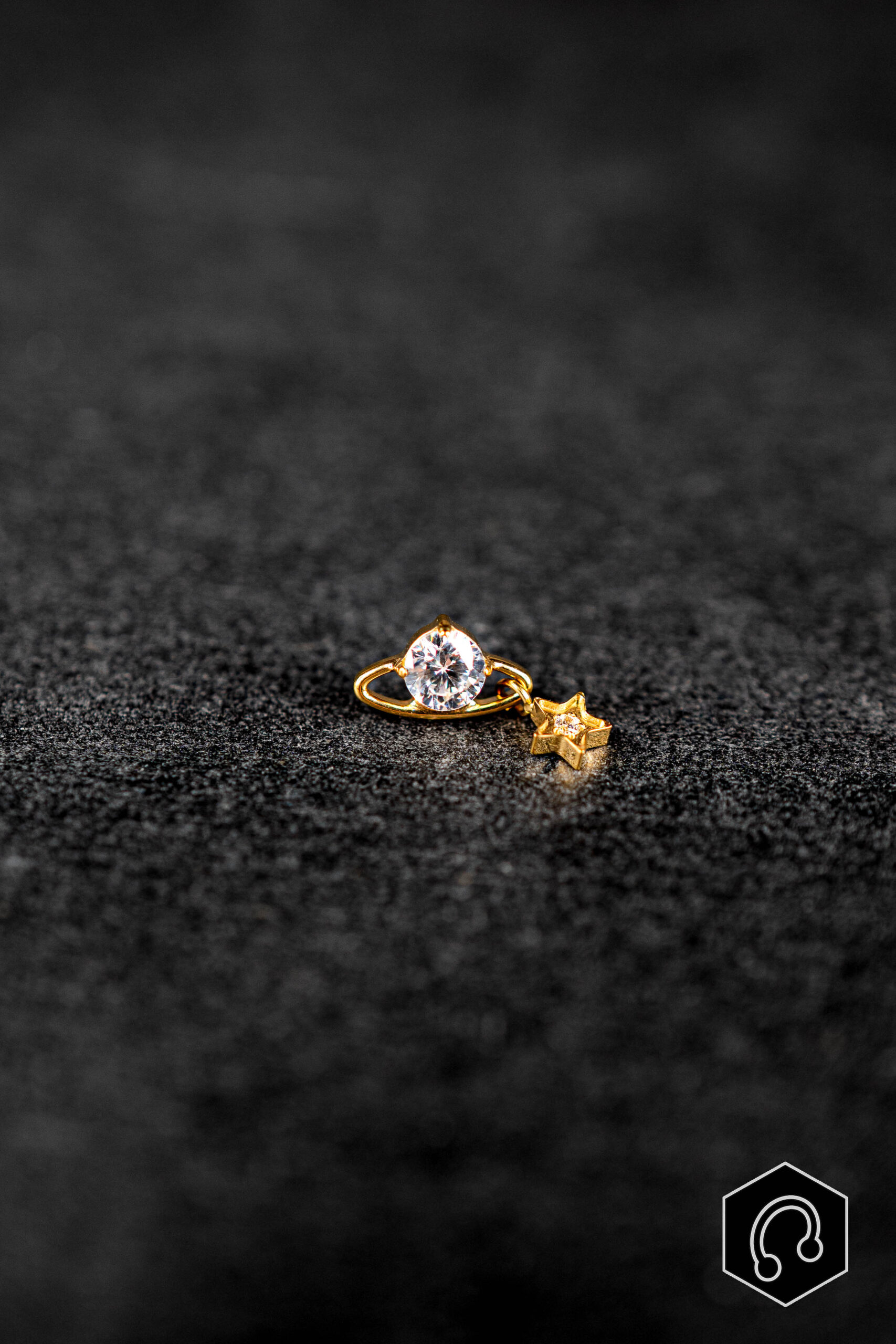 À la fois contemporain et intemporel, il est idéal pour celles et ceux qui recherchent un bijou original et lumineux, capable de sublimer un piercing avec finesse et personnalité.