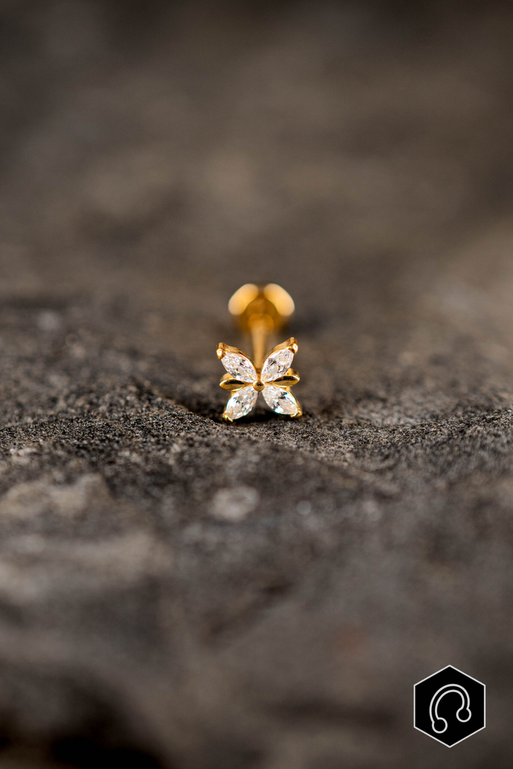 Apportez une touche lumineuse et raffinée à votre piercing avec le labret titane golden Marquise Bloom. Composé de quatre zircons clairs, il dessine une délicate fleur. Son design équilibré capte la lumière avec finesse et apporte un éclat subtil au piercing. Idéal pour le cartilage, lobe et médusa, Marquise Bloom se porte aussi bien seul pour un rendu délicat qu’en accumulation pour une composition plus sophistiquée.