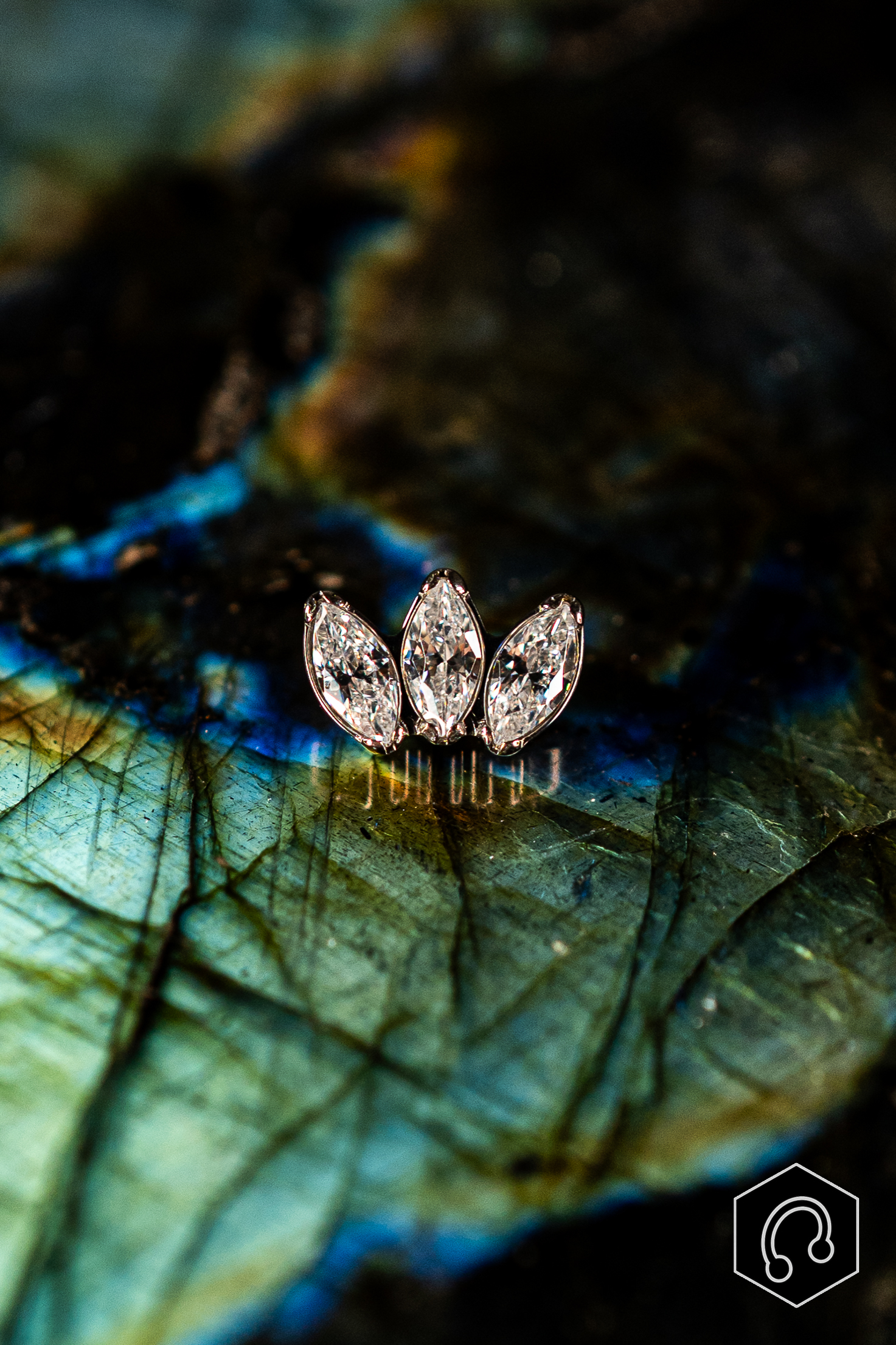 Affichez un style affirmé avec ce labret en titane orné de trois pierres taillées en forme de marquise.