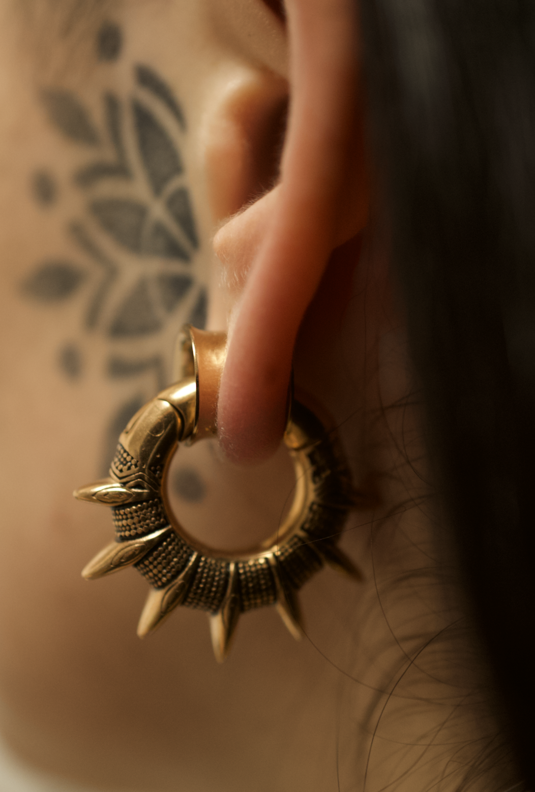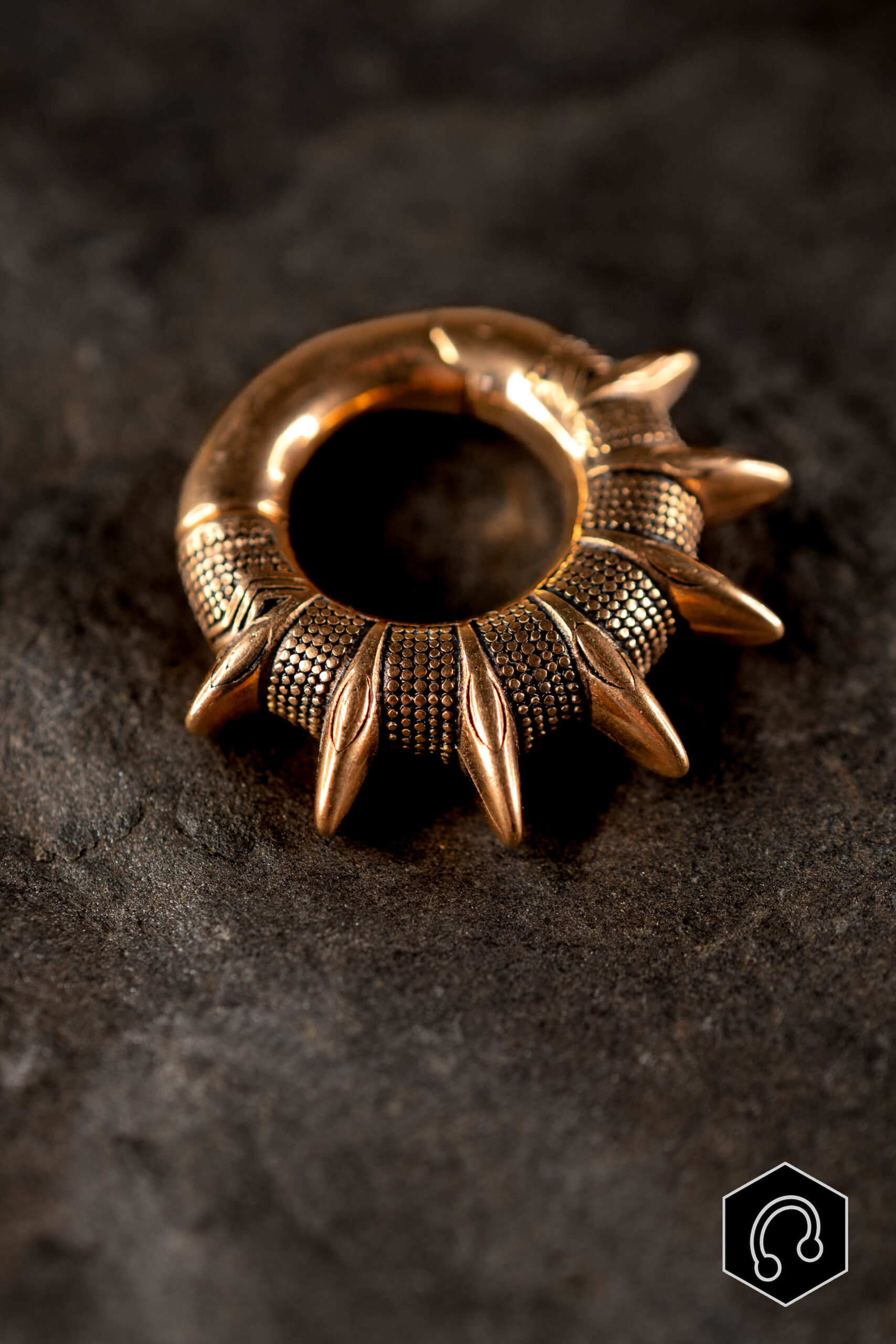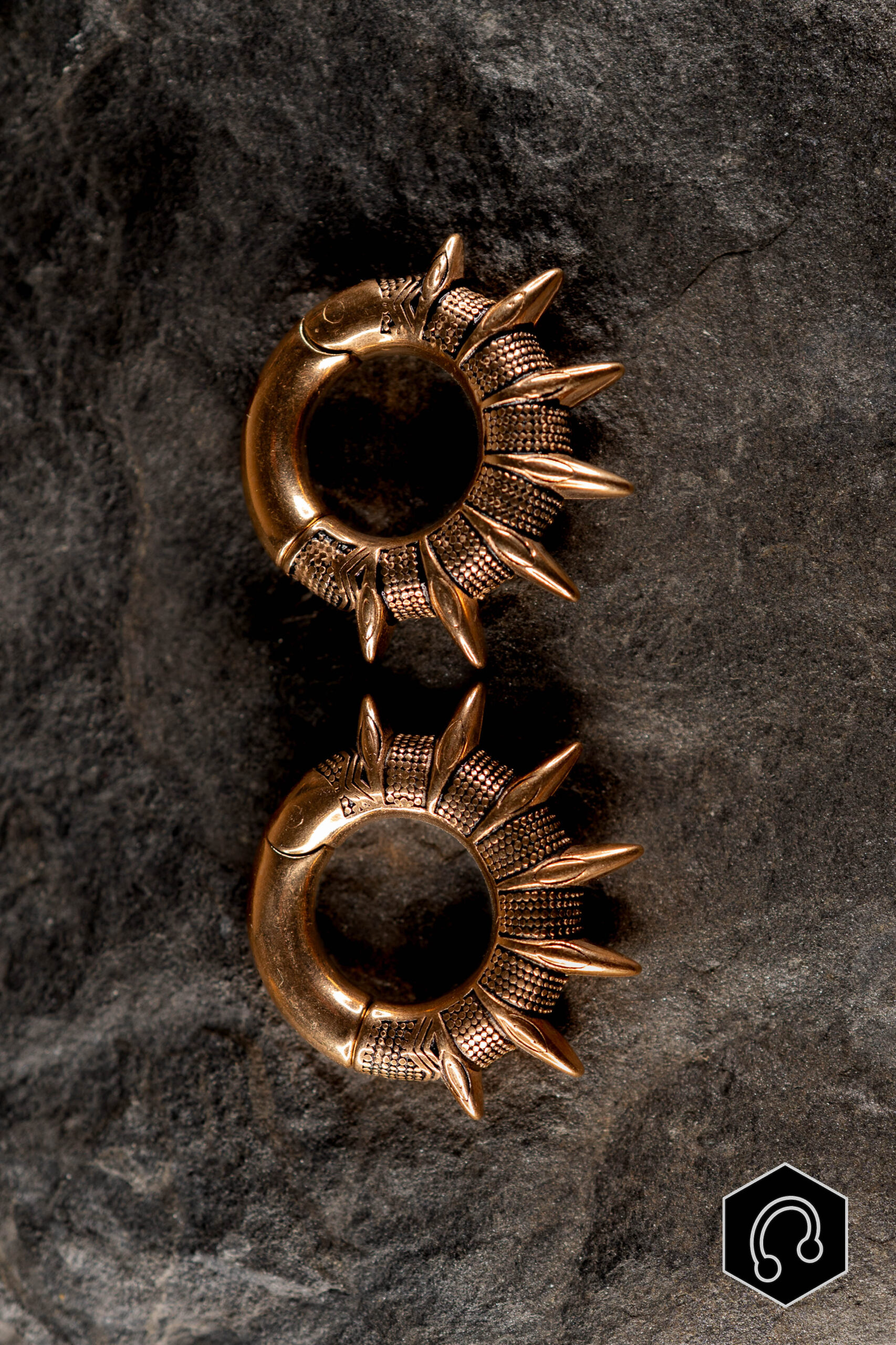 Imposants et puissants, le poids d’oreille rose gold Iron Fangs incarne un style brut et sans concession. L’anneau est orné de multiples pointes subtilement texturées pour accentuer son caractère unique. Chaque détail est pensé pour offrir un bijou qui attire l’œil, inspire la force et souligne la singularité de votre look. Solides et confortables à porter, ce poids apporte un équilibre parfait entre esthétisme tribal et influence underground.